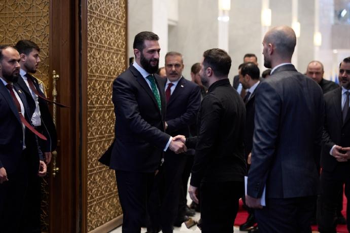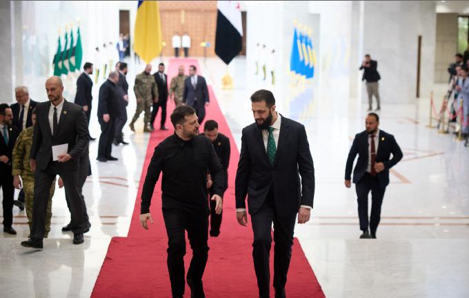 叙利亚新的仪仗队亮相,迎接泽连斯基访问。 4月5日,叙利亚迎来重要贵宾,他就是乌克兰总统泽连斯基,估计这也是叙利亚总统朱拉尼上任后接待的第一位国外总统。 从曝光的画面我们可以看出,叙利亚现在是焕然一新,仪仗队穿白色上衣搭配黑色裤子,看起来非常正式,另外在迎接现场还有红毯铺地,给足了泽连斯基排名,心细的网友还发现,叙利亚摄影师拍摄的也非常好,在迎接泽连斯基的路上车队也是非常庞大,难怪泽连斯基见到朱拉尼这么开心。 要知道泽连斯基去美国访问的时候,别说有仪仗队了,连红毯都没有。在和朱来尼会晤的时候屋子内都铺上了红毯。还有就是迎接泽连斯基的这间房子看起来非常新也非常漂亮,估计应该是新建筑的房子,朱来尼主要就是为了迎接国外贵宾。 随后,泽连斯基也发文说,他不仅和朱拉尼举行了双边会晤,乌克兰还和土耳其、叙利亚正在建立新的关系、创造新的机遇,并扩大我们保障安全的努力。同时泽连斯基还表示他们的会晤包括了很多议题,他们从安全与防务问题,还有就是伊朗事态发展引发的地区局势,到两国间的能源与基础设施合作。 可以说乌克兰和叙利亚其实挺像的,都是发生过战争,以后在重建方面肯定要经过很大的努力,所以两个国家真是惺惺相惜啊!记得去年的时候泽连斯基还提到了要帮助叙利亚重建,以及给他们提供乌克兰的粮食。这次泽连斯基估计又提到了这个话题。 其实不管叙利亚之前怎么样,要是朱拉尼真把叙利亚走进稳定富强,那么朱拉尼应该被更多的人所敬佩,就看朱拉尼能不能有这个担当和责任了。