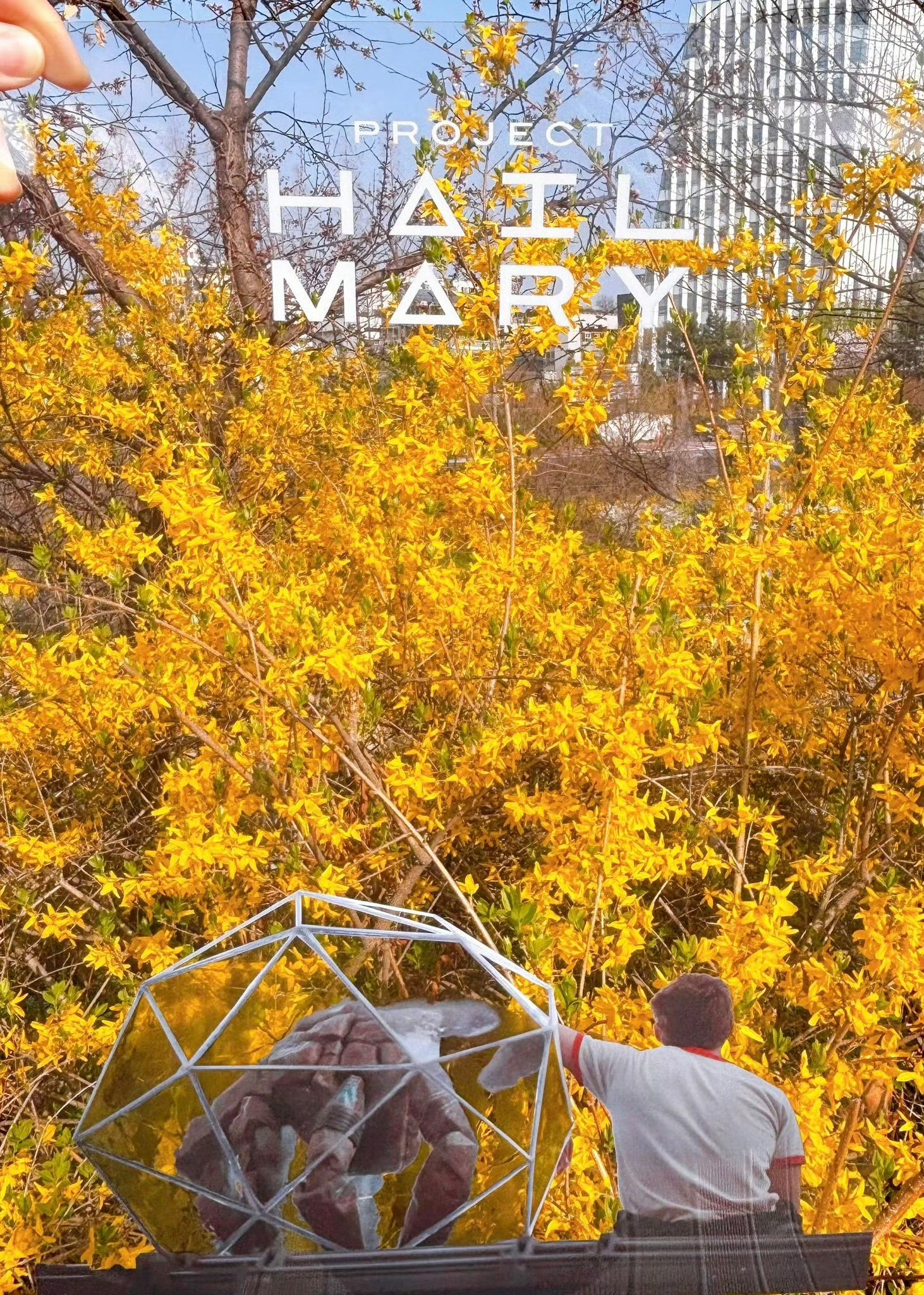 挽救计划透卡海报 《挽救计划》韩国院线做了透明材质海报,Rocky和 Grace一起在地球看风景🌍(图片cr. X)