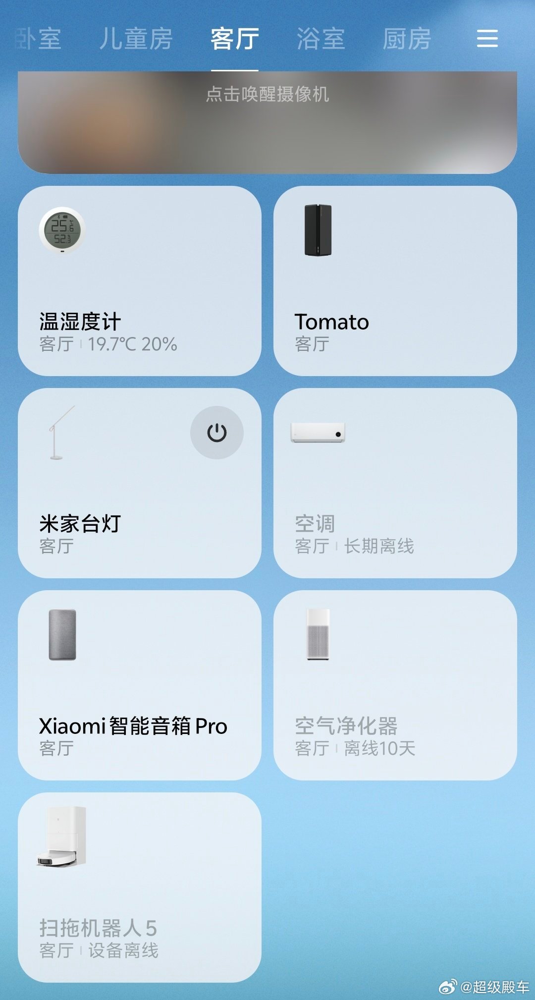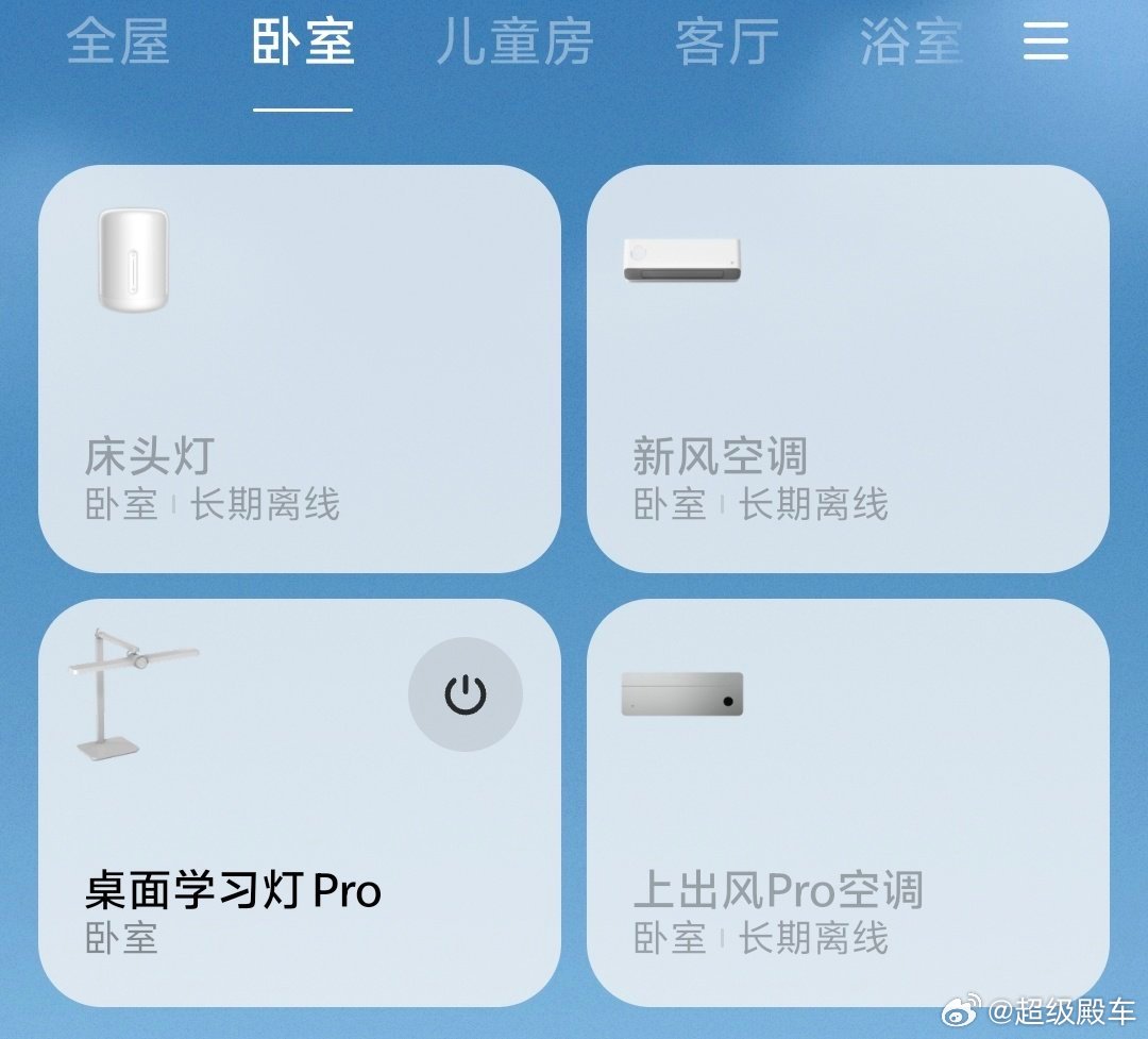 大的有电视、空调、冰箱、洗衣机、扫地机器人、空气净化器、摄像头、小爱同学、路由器。