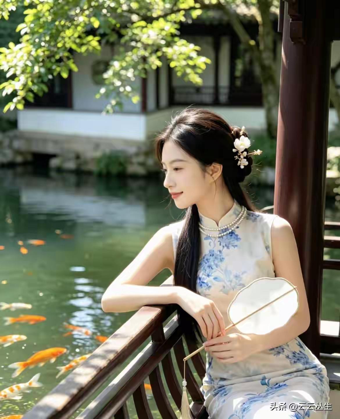 “古风少女与锦鲤的静谧时光”🌸💦🐟