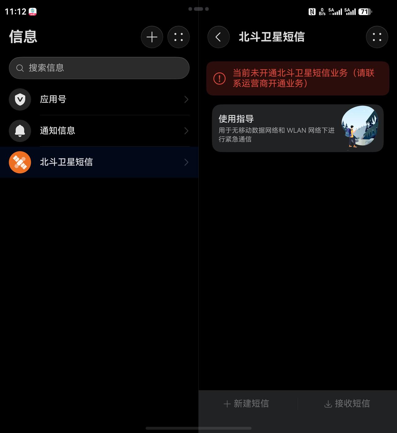 忽然发现华为手机北斗卫星短信免费使用的方法,人生第一次发送卫星短信。 刚买回来这部华为手机就发现了在短信页面有北斗卫星短信功能,但是上面提示没有开通北斗卫星短信业务,需要跟电话号码运营商开通,印象里面当时查询应该是每个月10元。 这两天玩手机时忽然想看一看华为畅连有啥用,打开之后就是拨打电话的页面。但是它的消息页面中也有北斗卫星消息,显示还在众测阶段,但是完全免费。目前每个月免费使用额度是30条,当月月底清零。 尝试了一下,居然真的发送成功了。你可以自己编辑短信内容,然后附位置的经纬度。然后根据它的指示调整手机位置(似乎是搜寻卫星),操作还是非常简单的。 华为还是良心啊,喜欢户外运动尤其是野线穿越的朋友可以备一部华为手机,关键时候也可以应急使用。