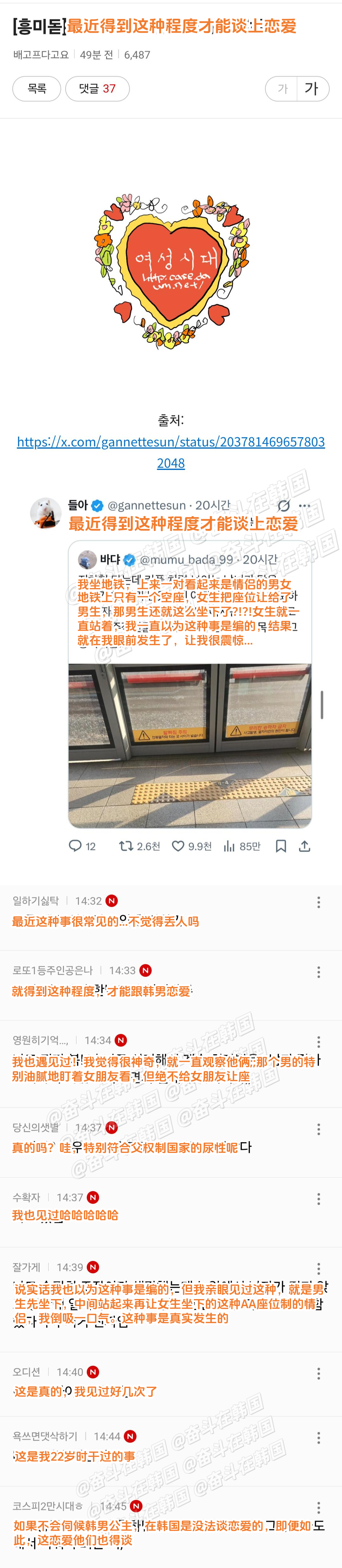 韩国网友感叹:最近得到这种程度才能谈上恋爱 海外新鲜事 热点现场