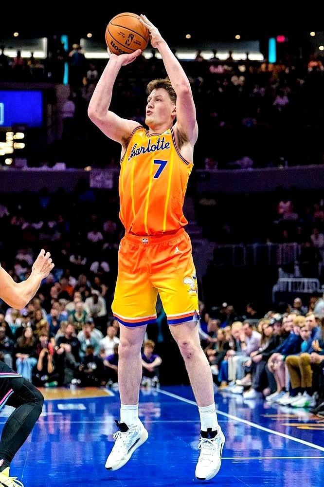又一个被选秀报告“骗”了的人! 黄蜂队这个4号秀康·克努佩尔,当初多少人说他运动能力平平,就是个纯射手。结果呢?人家直接打脸。 新秀赛季72场比赛,狂扔超过250记三分,破了NBA历史新秀纪录,还是史上最年轻的!场均快20分,真实命中率奔着65%去了,效率高得吓人。 手感也不是一直火烫,对国王8中5,打篮网就4中0。可人家调整快,对步行者单场干进8个三分。黄蜂队直接从东部鱼腩被他带到了附加赛门口。 这种用脑子打球的球员,上限真不是几页报告能定义的。