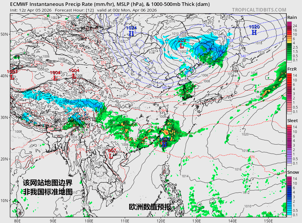 图1为官方报、图2-3为欧美数值预报,图4-5为对流能量和形势场预报。总体看,12日前,南方暖湿气流一波又一波的北涌。6日因为低空有东北风-东风压制,南方强降雨区偏南。7日暖湿气流开始增强,冷空气北收,降雨暂时减弱。8日-9日低空西南暖湿气流显著增强,强降雨区北抬到长江中下游,而且雨势也增强。