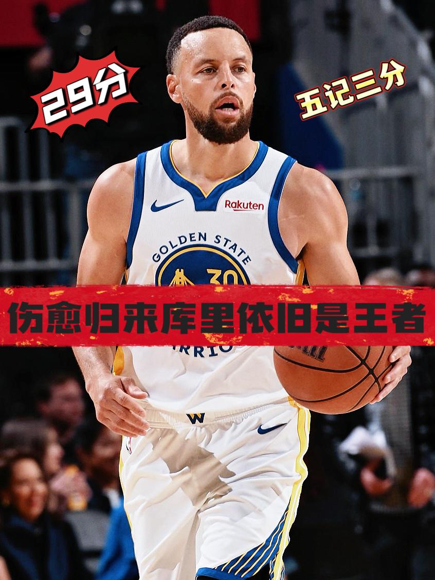 5记三分狂砍29分!伤愈归来库里仍是王者! 在今天NBA常规赛勇士主场迎战火箭的比赛中,此前因“跑步膝”问题缺阵两个月之久的勇士当家球星史蒂芬·库里正式迎来复出!最终他在26分钟上场时间里拿下全队最高的29分,险些帮助球队完成惊天逆转! 今天的库里再次让人看到了联盟第一控卫的风采!比赛中火箭多次将分差扩大至15分以上,但库里上场后总能帮助勇士迅速迫近比分!利用自己强大的牵制力,库里为队友们创造出无数得分机会,今日勇士全队34次助攻远胜以往!库里的存在,让一切变得简单! 而今天库里本身的进攻状态亦是十分出色,在关键的第四节比赛中,库里多次利用个人能力帮助球队打破得分荒,几次精彩的突破得分更是引得现场球迷大呼过瘾!全场比赛,库里21投11中,三分球10投5中,得到29分2篮板4助攻1抢断!看到库里复出首场就打出如此表现,老队友杜兰特亦是感叹道:“我们本来完全掌控着比赛,但库里的上场打破了一切!” 还是那句老话,有库里的勇士!一切皆有可能!