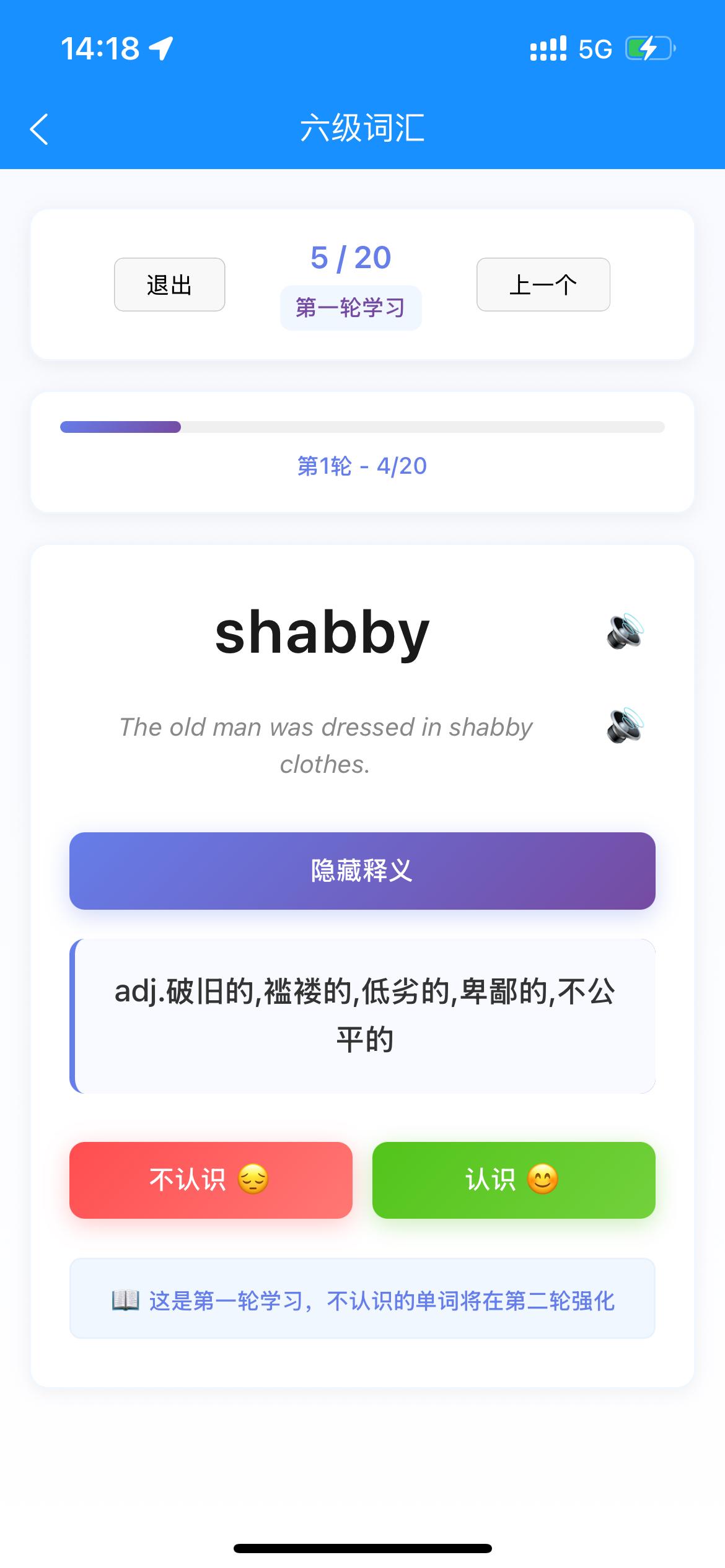 背大学六级英语单词 shabby真的有这个单词吗 发音我会。 意思完全不知道。 点开来认识了