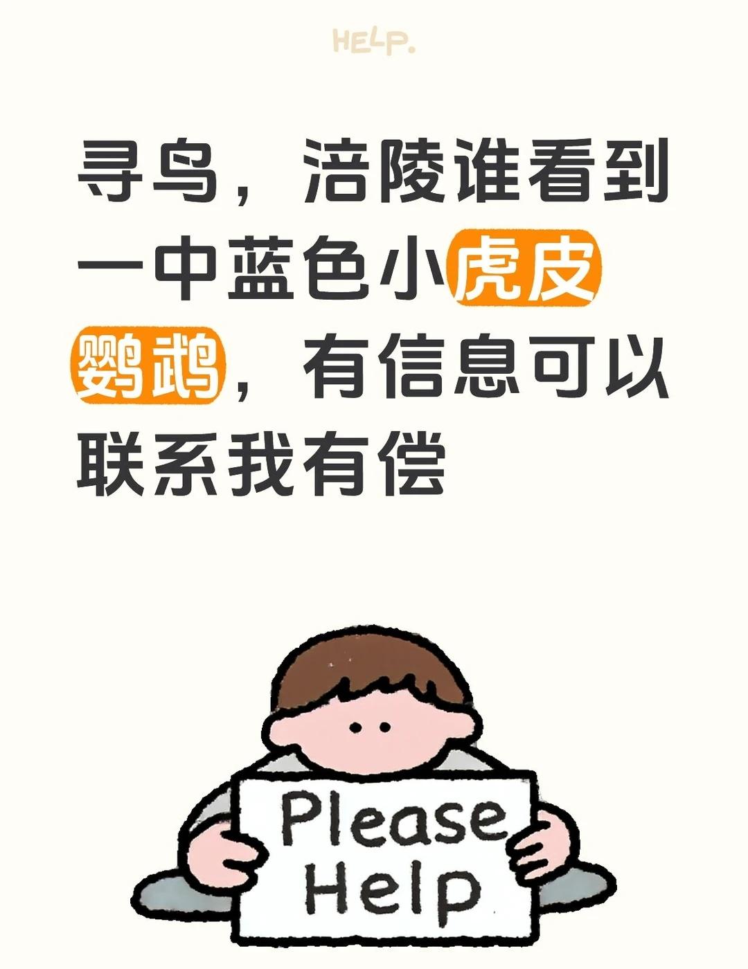 有偿寻鸟 有相关信息的可以联系我寻鸟启示 虎皮