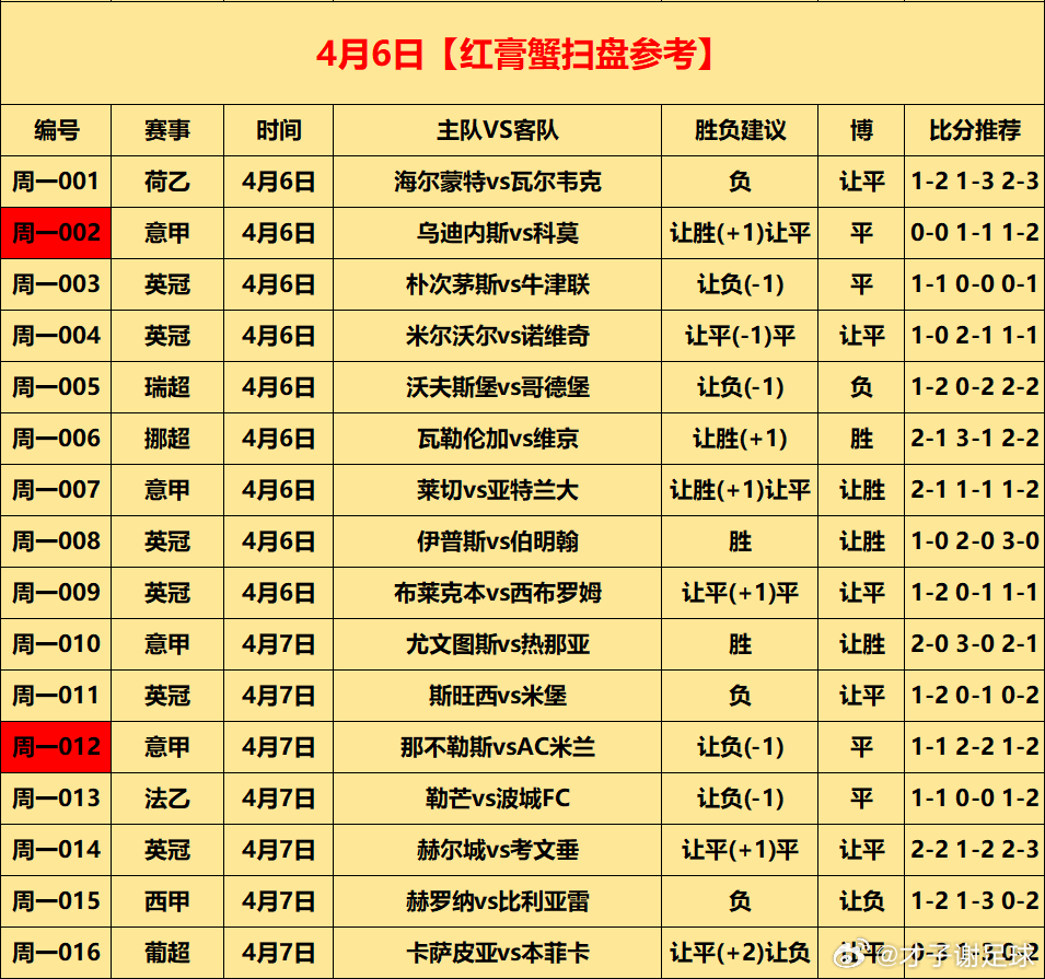 今日⚽初步参考
