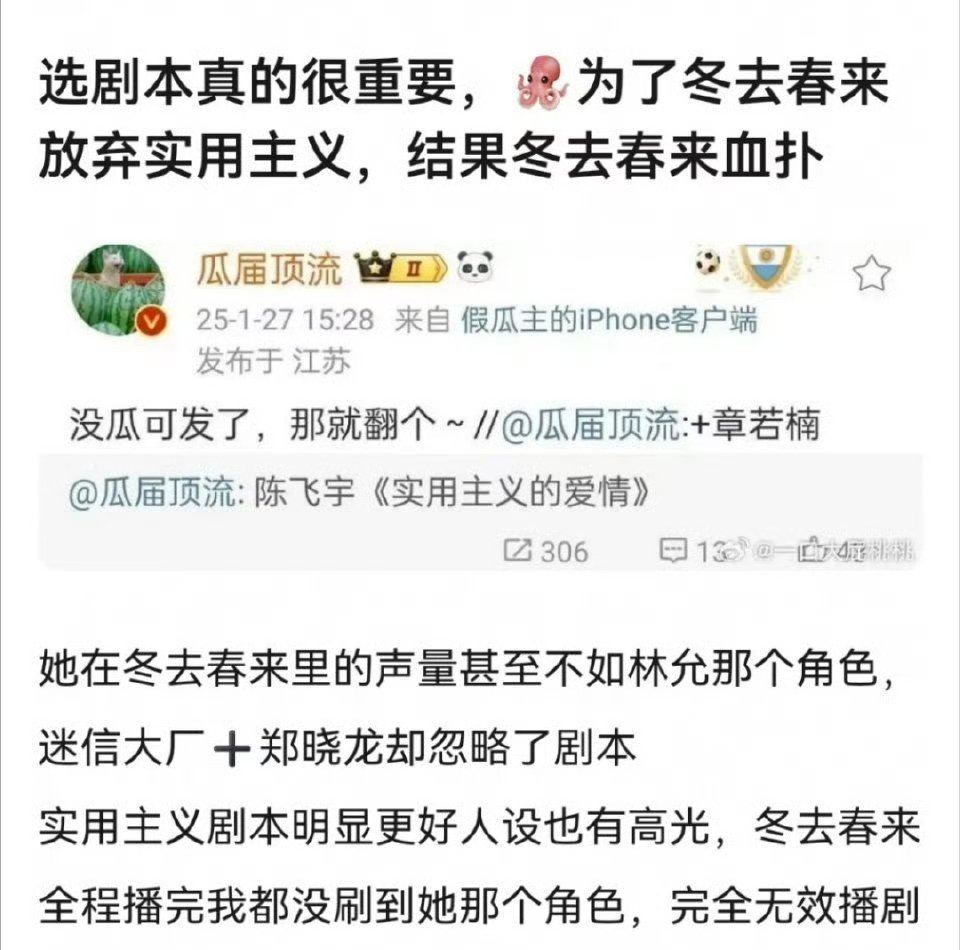 就算现在知道结果了,我觉得还是会选冬去春来,毕竟实用爱情主义不也就那样