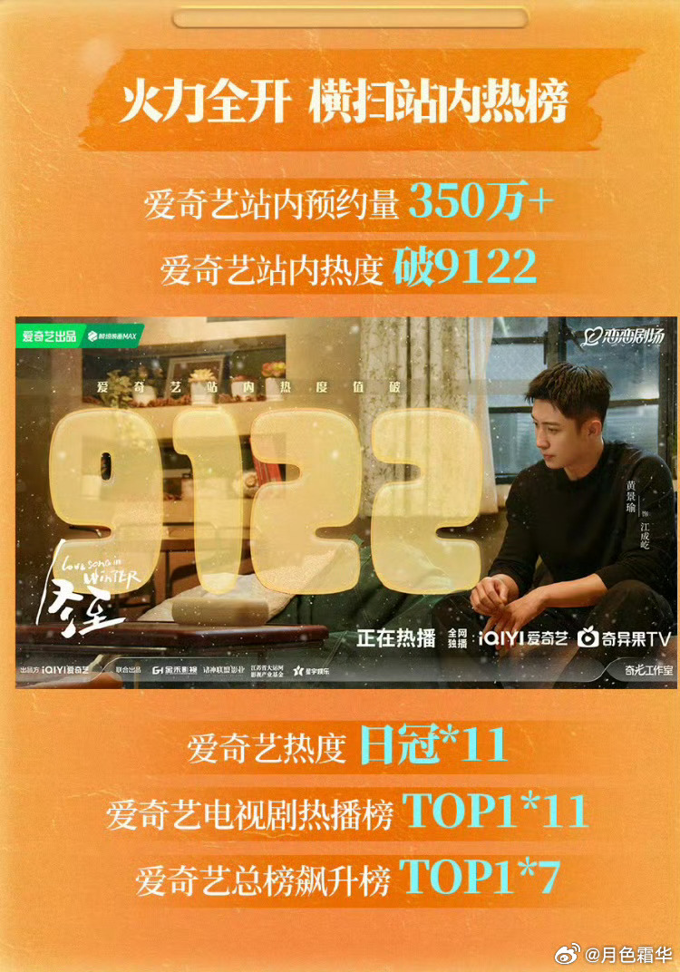经典:破案和恋爱不要放在一个剧里,除非你是黄景瑜。黄景瑜演的又破案又恋爱的《冬至》是爱奇艺这几年现偶唯一的9122,过了一年上星江苏卫视,还能拿季度冠军(超过2025年全年收视率),这个就叫专业,人民的选择,景瑜的追求。 黄景瑜冬至 4月5日,台湾TVBS42台黄金档播出~~