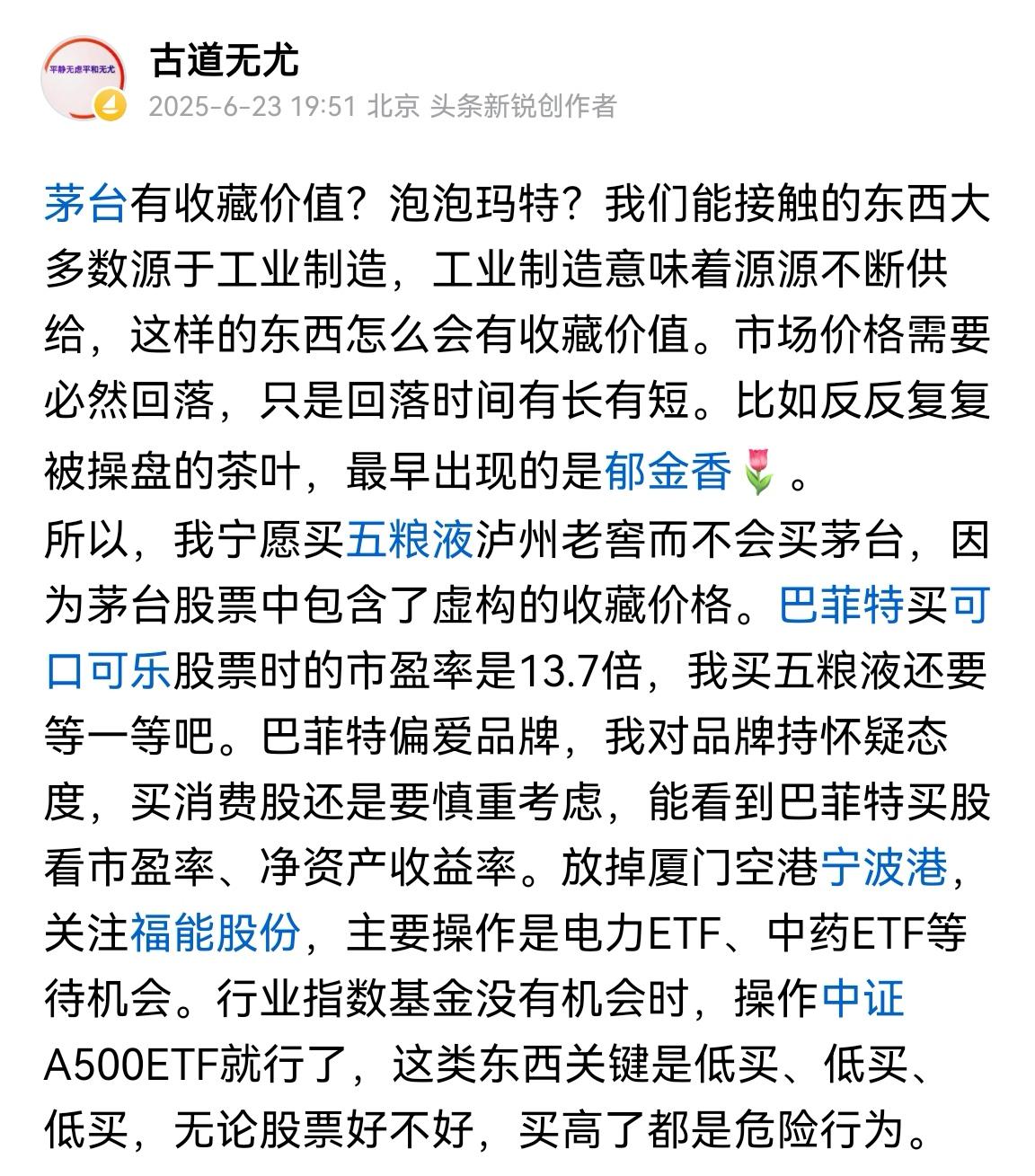 段永平关于泡泡玛特的回复让小散们又凌乱了。“我只是说我收回不投资泡泡玛特的说法,没说我已经买了呀,当然这也不意味着我没买。” “我说的是王宁对商业的理解是顶级的,从没说过他们的商业模式是顶级的,虽然我认为他们已经跑通了他们的商业模式,长期看他们的商业模式也还不错。” 小散们为啥要关注别人买了什么?尤其是大V买了什么?就是心虚、不研究还想赚钱,或者亏了有个地方发泄? 泡泡玛特?我是不会买这类东西的,工业品加收藏价值?不伦不类!!!工业制造意味着源源不断供给,这样的东西怎么会有收藏价值。市场价格需要必然回落,只是回落时间有长有短。也许你可以赚钱,但是这样的投资逻辑不可复制,因为充满不确定性也就意味着盈亏不可控。大V买股票买了多少?也许只是1%,也许只是买一点观察,可以忽略的仓位,大V筹资能力较强,可以持有十年二十年,你能做到吗?