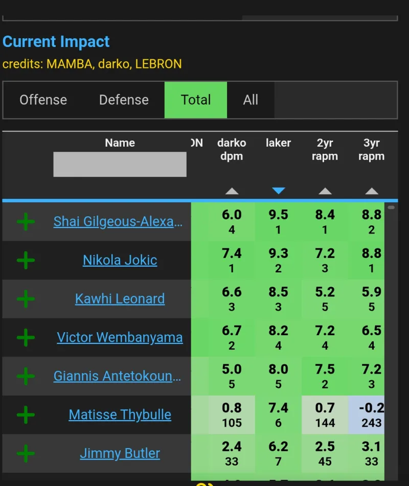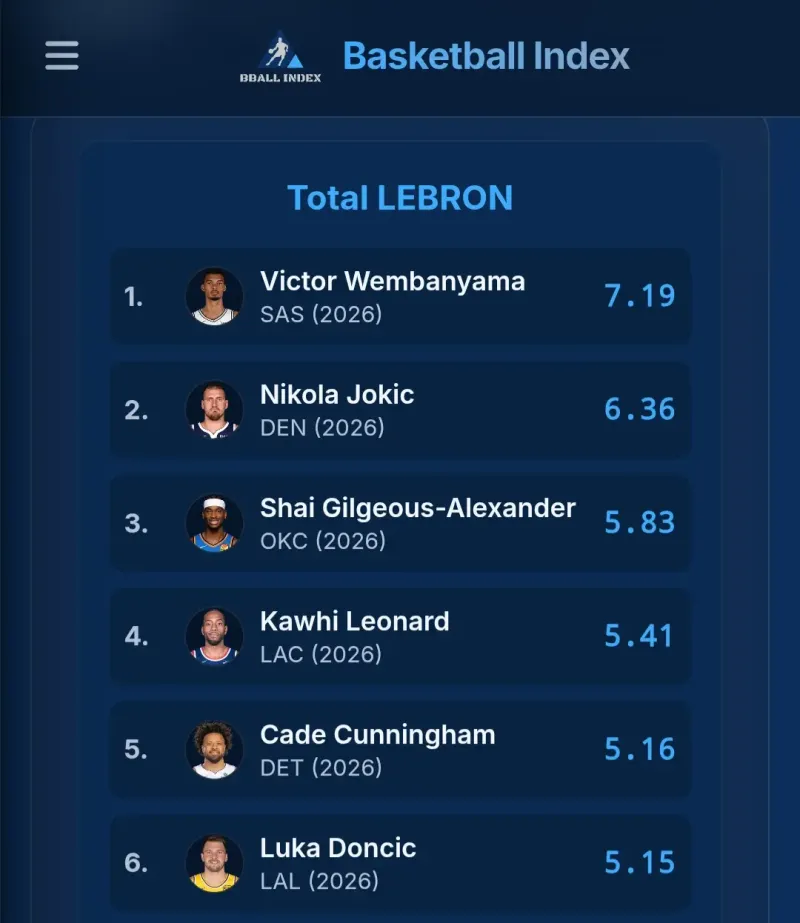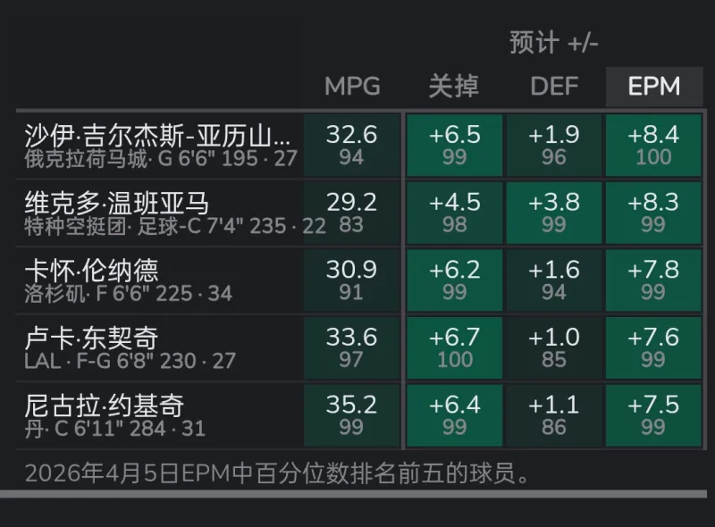 高阶数据DPM联盟第3,EPM联盟第3,RAPM联盟第3,laker联盟第3,lebron联盟第4。
