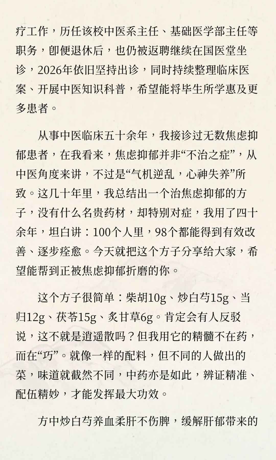 一个治焦虑抑郁的方子,我用了40年