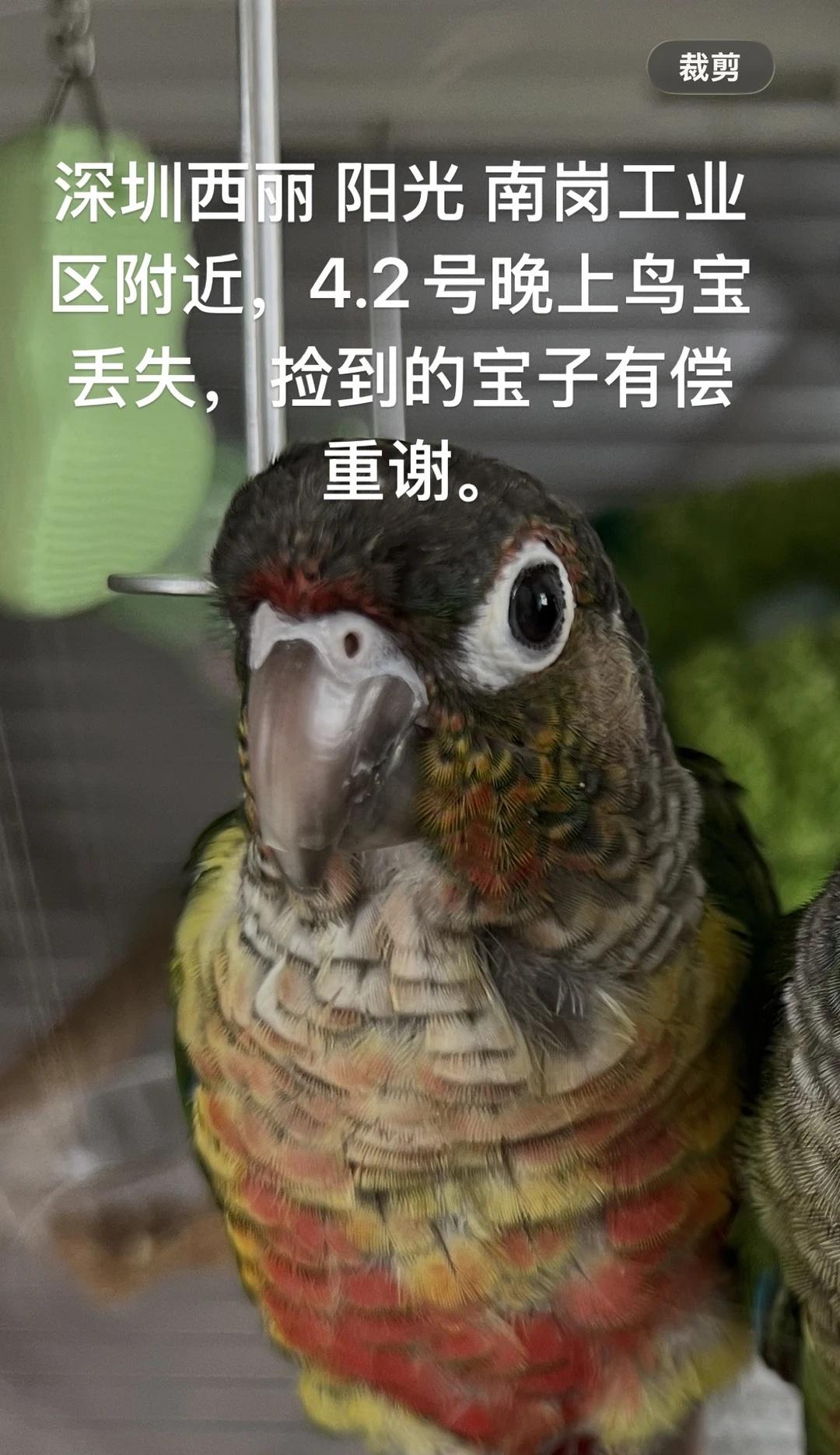 坐标深圳西丽阳光,南岗第二工业园附近,4.2号晚上鸟宝丢失,脚环号如图,有捡到的宝子麻烦找下我。 养了一年多了,有感情了,深圳这几天总是下雨,不知道鸟宝有没有淋雨[流泪] 鹦鹉 深圳鹦鹉 小太阳黄边