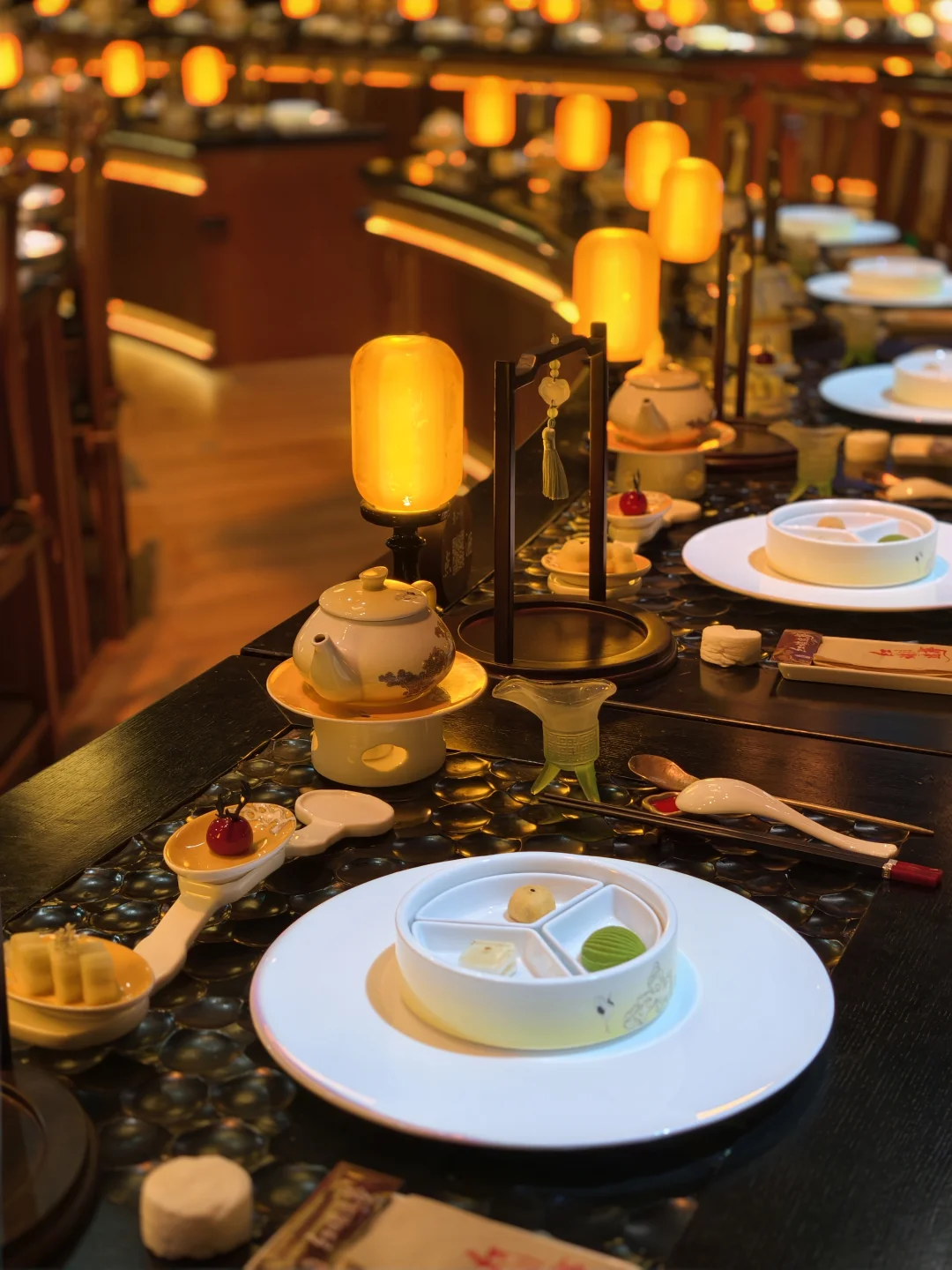 用餐过程太讲究,不是普通吃饭,而是一场边吃边看剧的沉浸式餐秀。