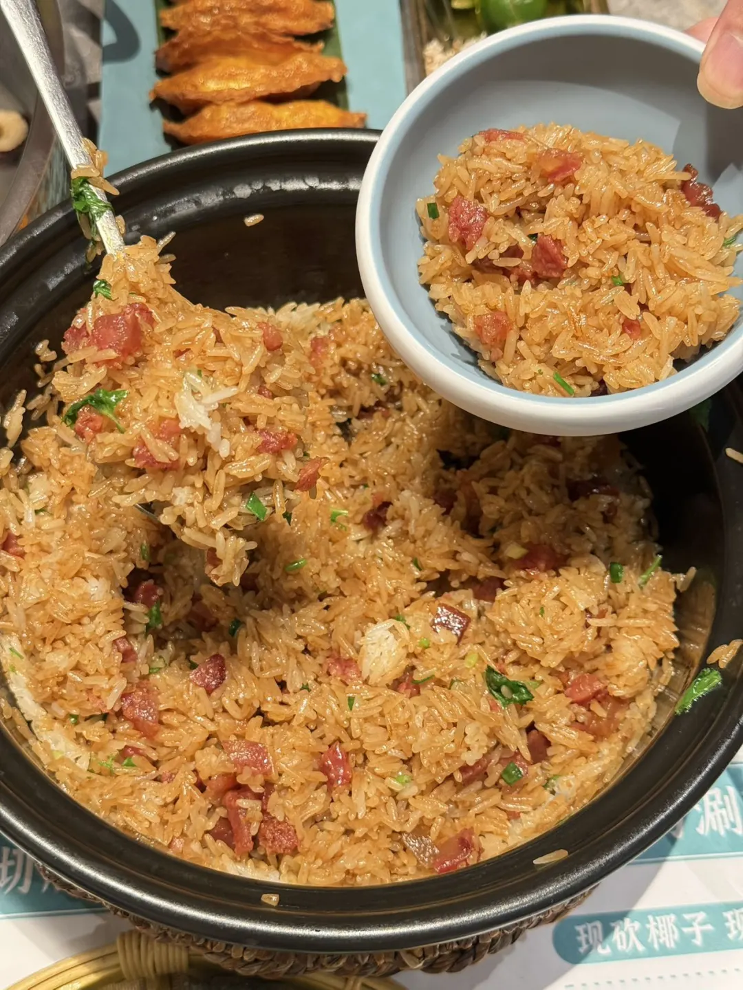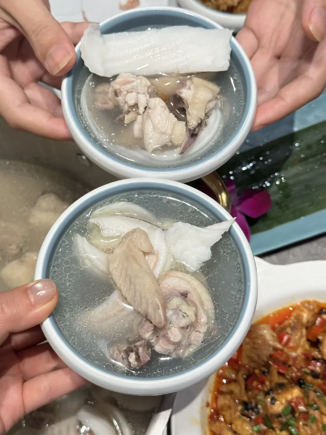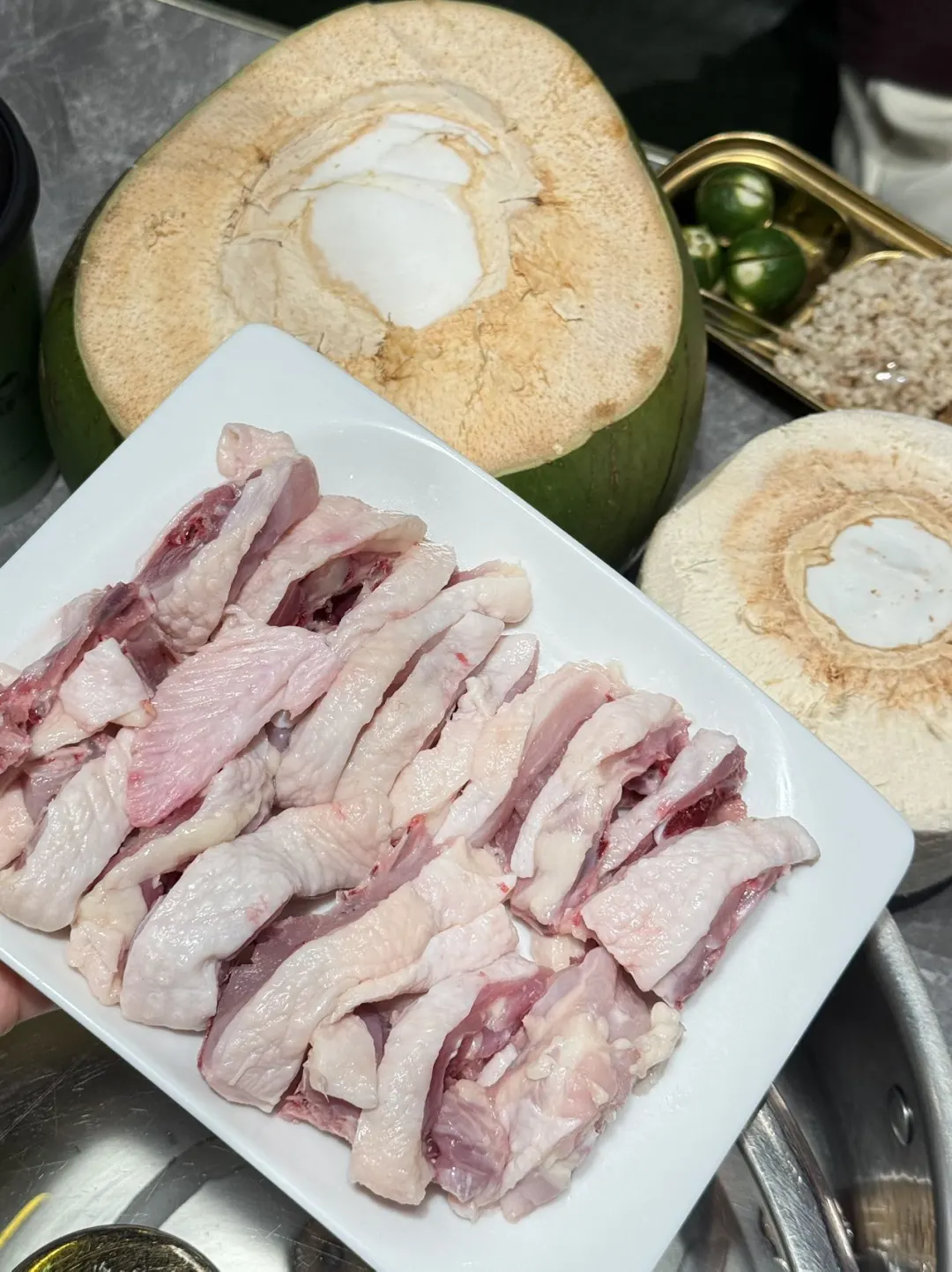 谁懂啊!在南宁挖到超正宗的现砍椰子鸡🍃 就是这家三个椰子,不用飞去海南,也能一口坠入海岛椰香里~ 现砍的新鲜椰子直接倒锅,清澈椰汤咕嘟冒泡,清甜不腻✨ 下入嫩滑文昌鸡,煮好先喝两碗汤,鲜到舌尖发抖,鸡肉嫩而不柴,裹上秘制蘸料,香到迷糊! 重点是他家还能解锁一鸡多吃—— 除了清甜椰子鸡,还有剁椒剔骨蒸鸡,无骨超省心,剁椒鲜辣入味,鸡肉滑嫩多汁,一口就上瘾,重口味党直接爱住! 除了招牌椰子鸡,他家的椰奶也超绝~ 店里氛围温馨舒服,不管是朋友小聚还是情侣约会都超合适,吃完在融创茂逛逛,惬意感拉满🌿 来南宁玩或者本地觅食,这家椰子鸡闭眼冲,绝对是吃过就念念不忘的味道~ 🏠店铺:三个椰子·现砍椰子鸡(南宁路桥融创茂店)