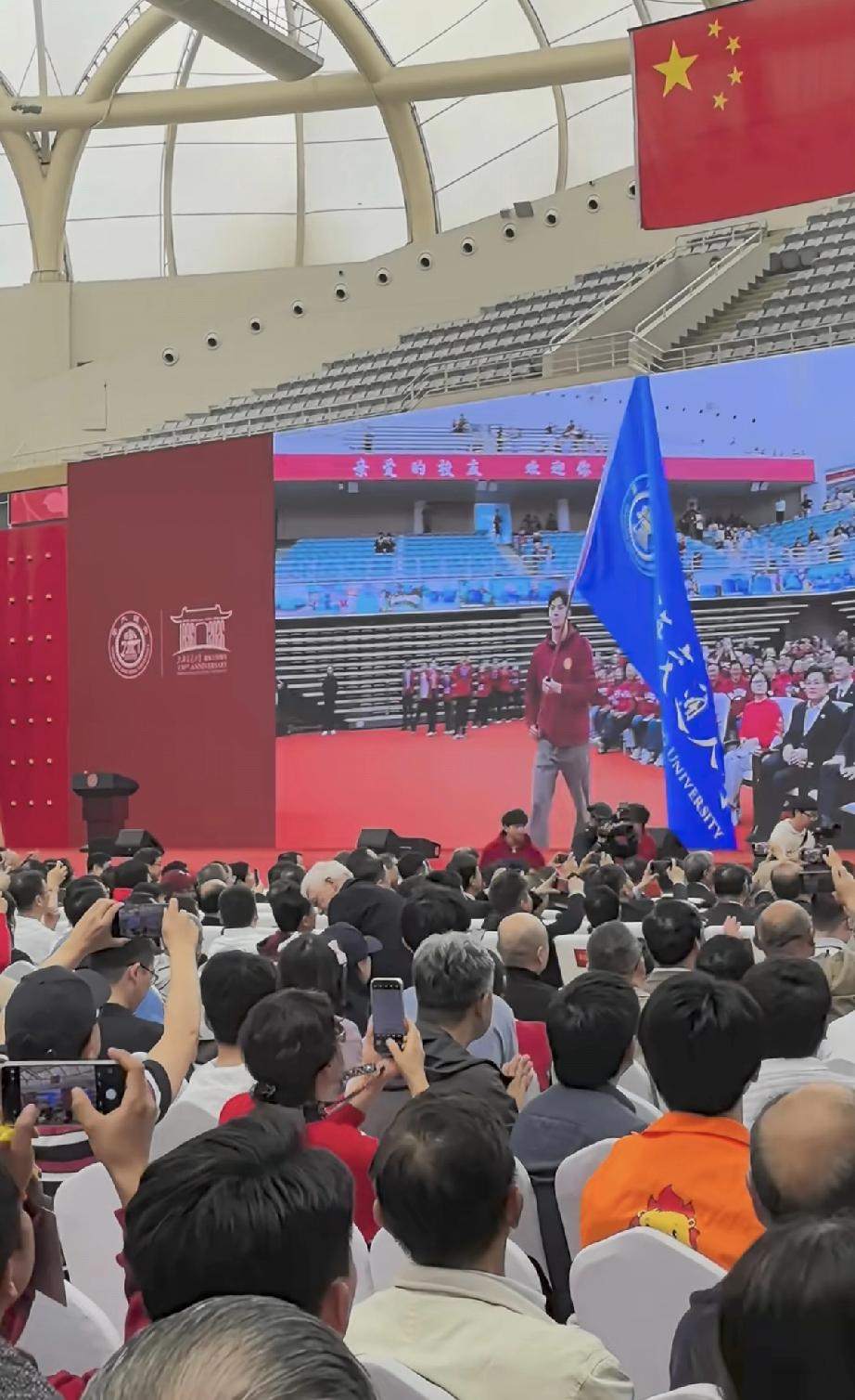汪顺参加完上海交大校庆后,独自坐在草地上,笑得像个小孩。 4月6日上午,汪顺现身上海,参加上海交通大学130周年校庆活动。 汪顺作为该学校培养的优秀校友,当然是本次校庆活动重点的邀请对象,为了配合此次校庆,他专门穿了一件玫红色的上衣,网友都说这个颜色选得好,一般人很难驾驭。 可见,汪顺虽然已从上海交大毕业多年,但面对母校的校庆活动还是很认真。 他在台下时,有人隔着座位老远跟他握手,他主动配合;到了台上,他站在角落里,准备护送校旗上台有点紧张。 后面他护送校旗到了台上,终于完成任务卸下包袱,于是活动结束后,他独自跑到校园的草坪上拍照,肆无忌惮地笑像个小孩,有点可爱。