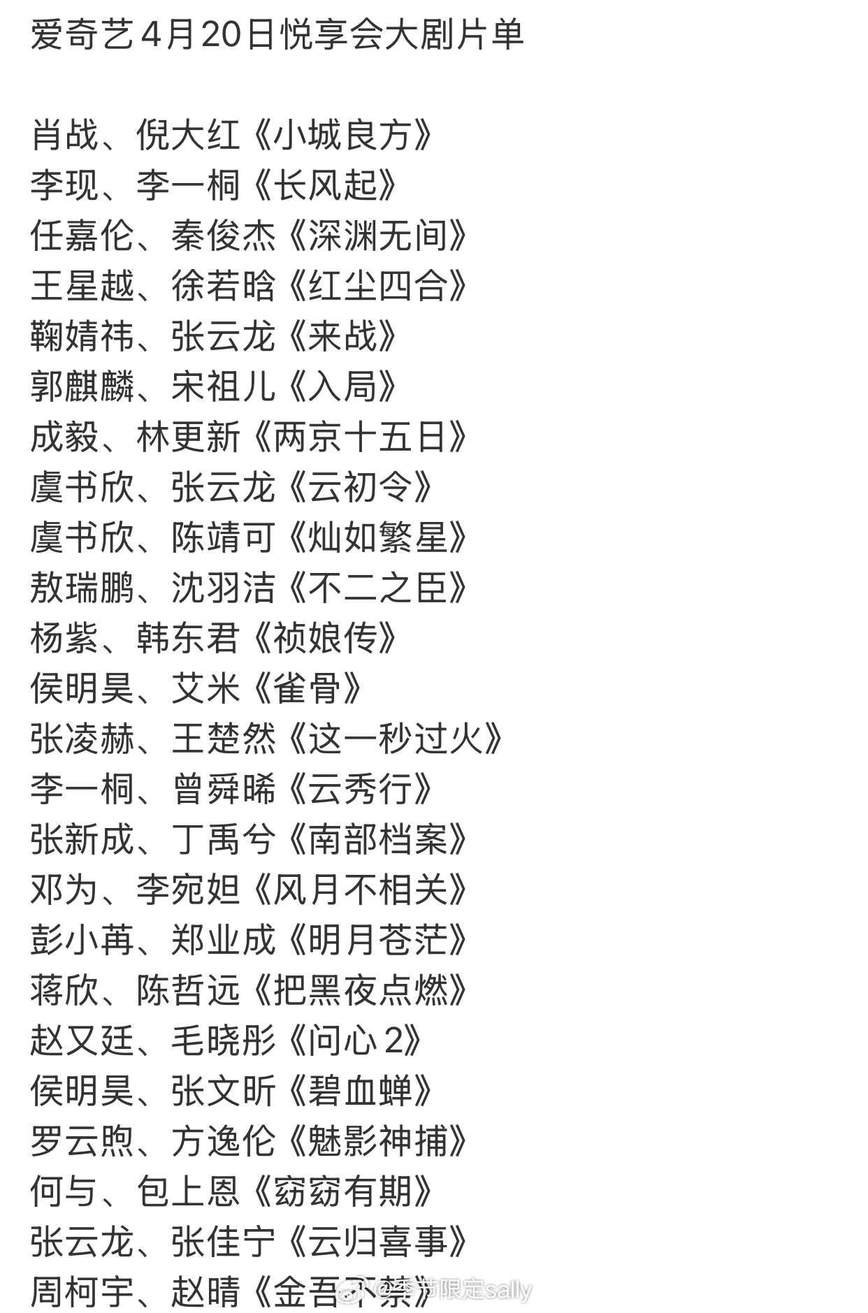 网传爱奇艺4月20日悦享会大剧片单🈶爱奇艺420招商片单