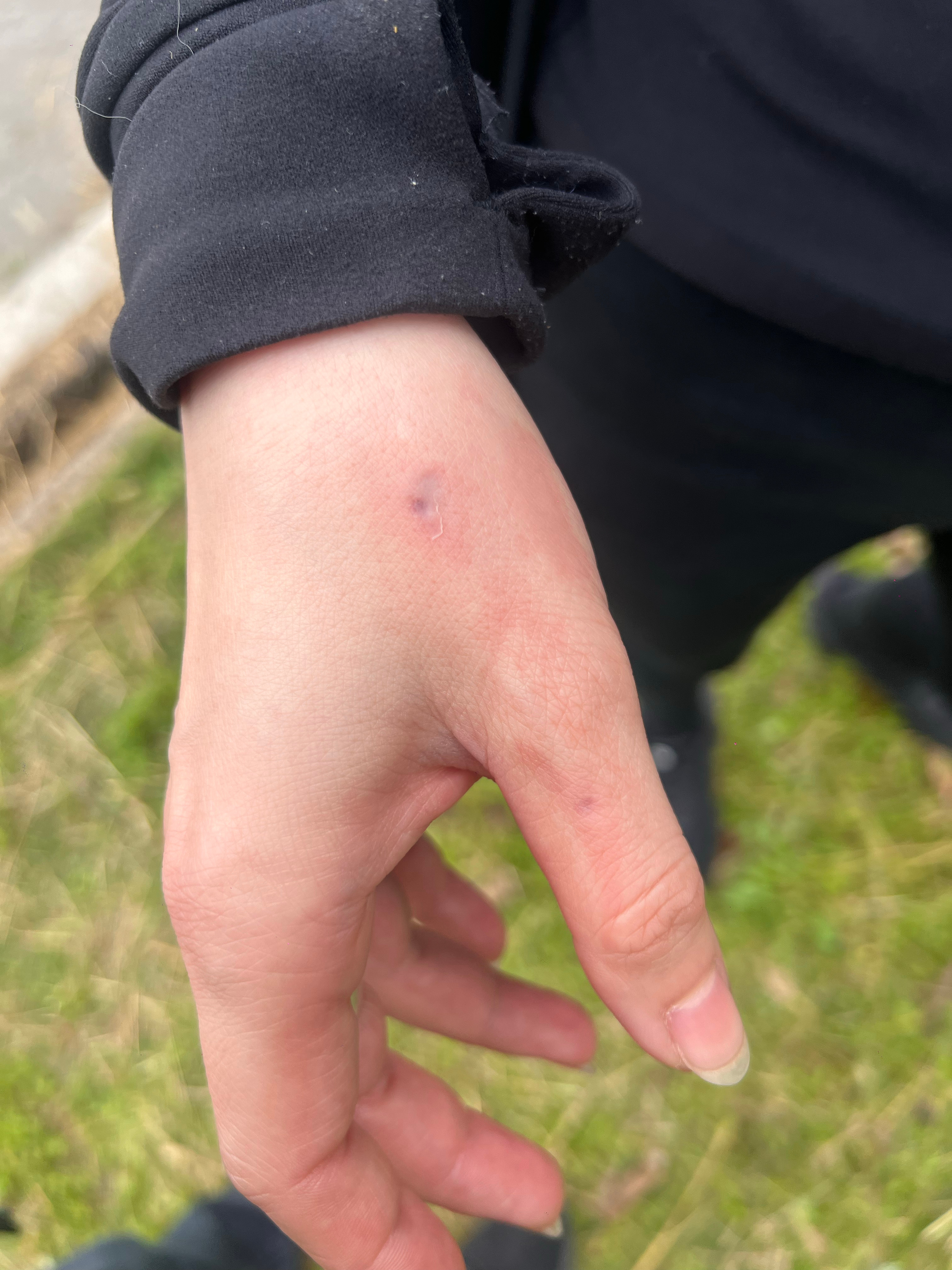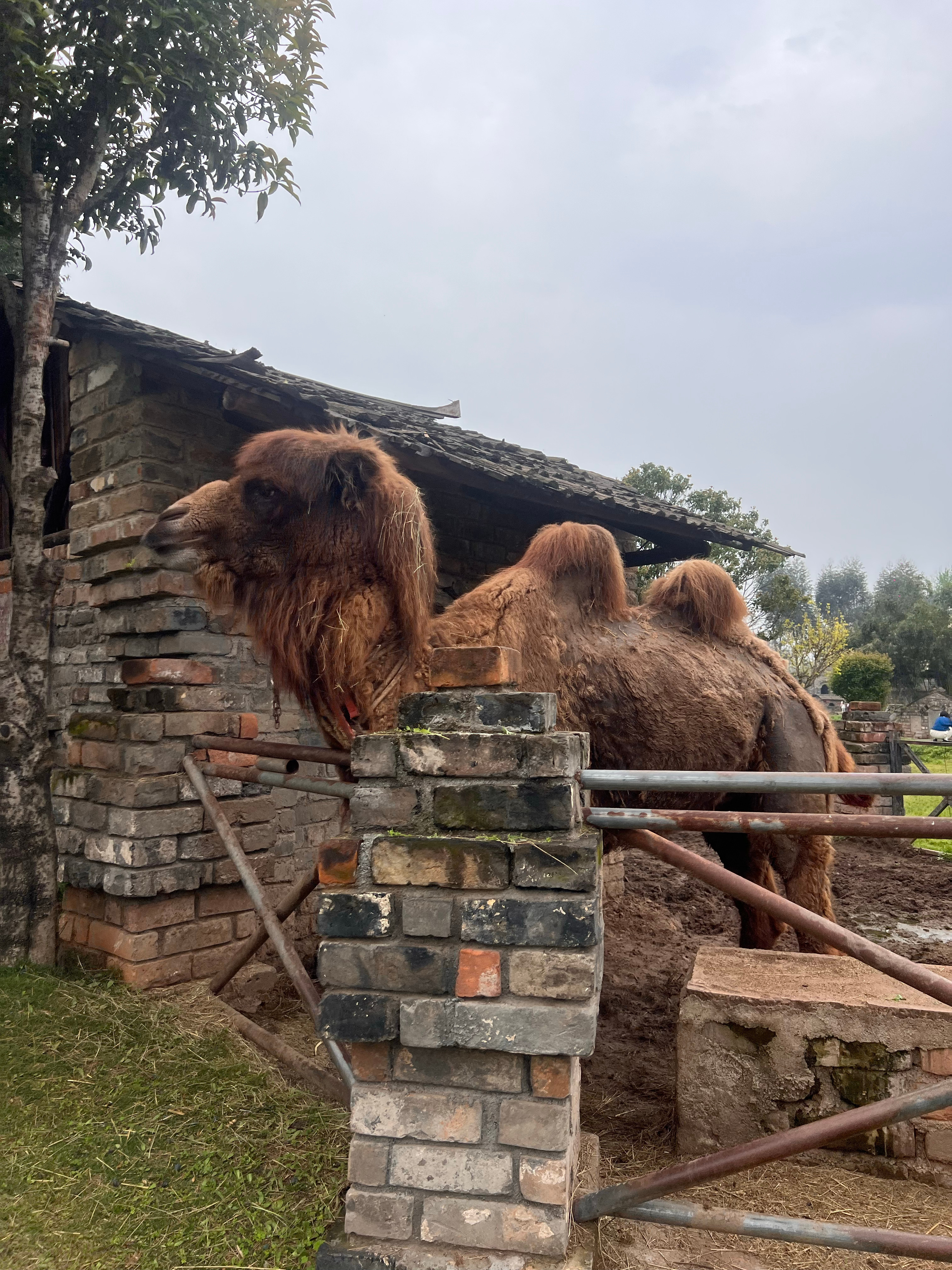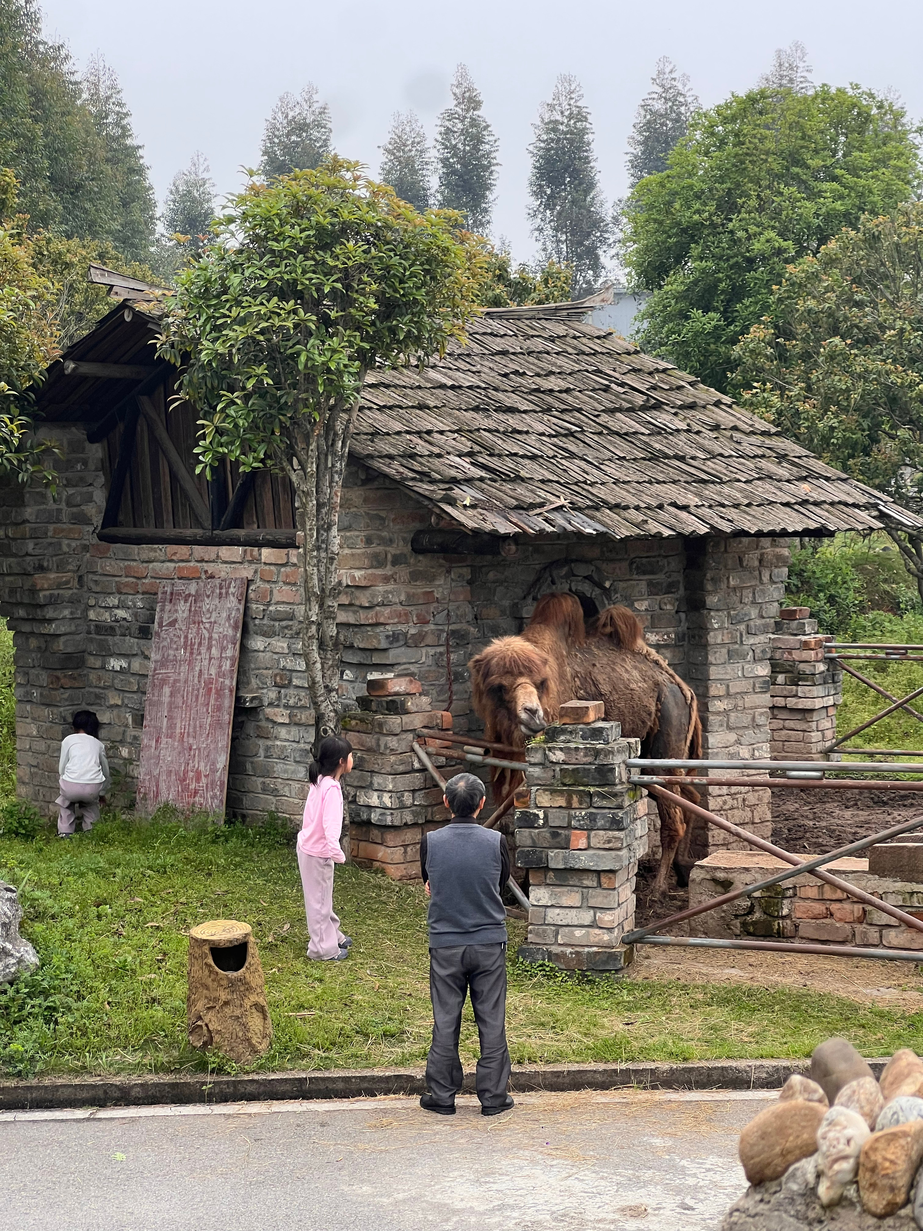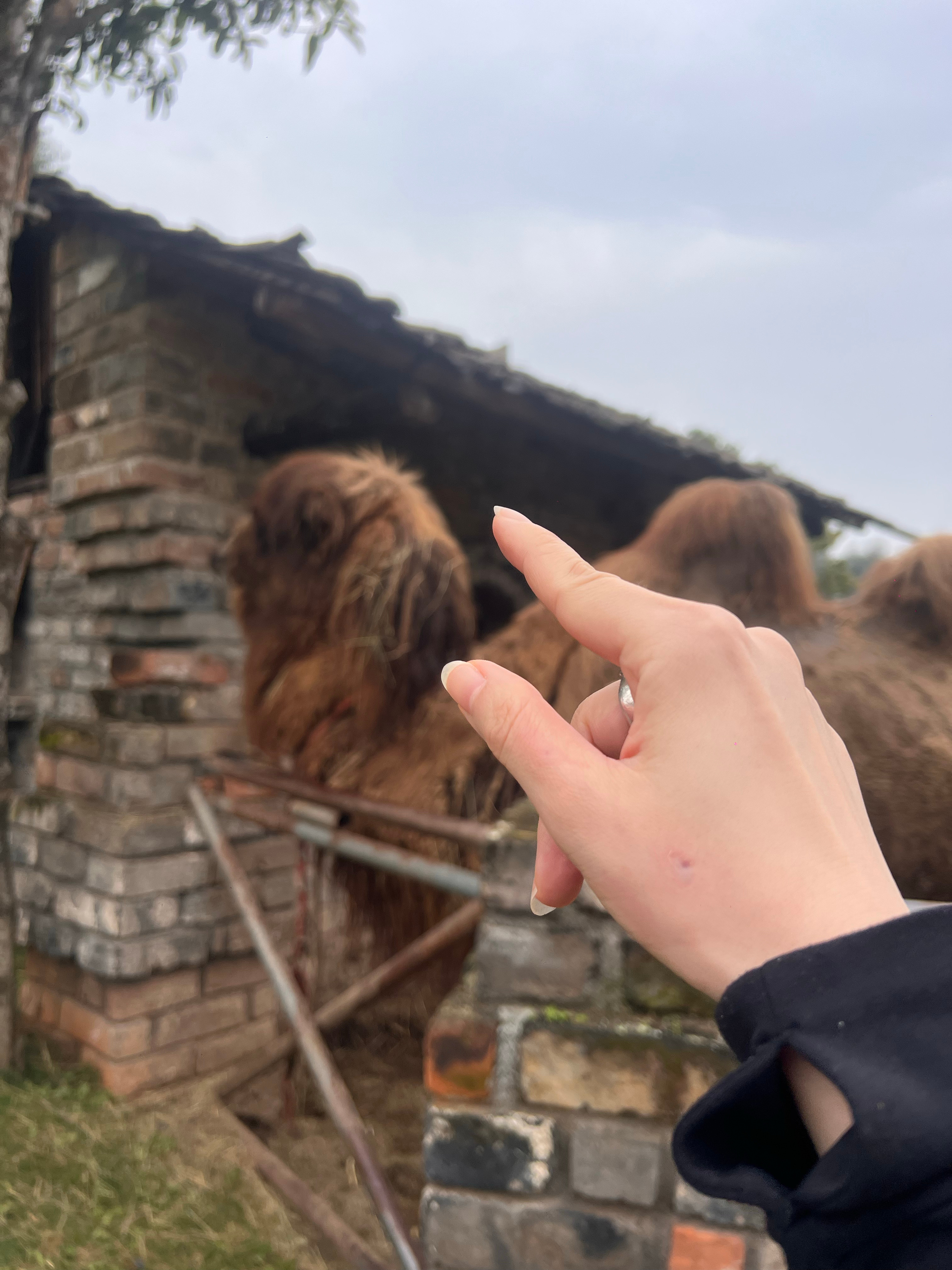 继被大象亲嘴,被羊驼吐一脸之后,今天被2米多高的骆驼咬了。我才拿上一把草过来,没想到骆驼速度这么快,一个摆头瞬间咬死我的大拇指,并且是咬住不松那种,Chris冲上来扇了它一巴掌才松手。后来我挺庆幸是我过来被咬了,本身我是看到两个小丫头一直逗它吃草才被吸引过来的,如果不是我一来就被咬了,这俩小丫头估计会被伤的很重照片是刚被咬的时候拍的,后来整个大拇指都青了。