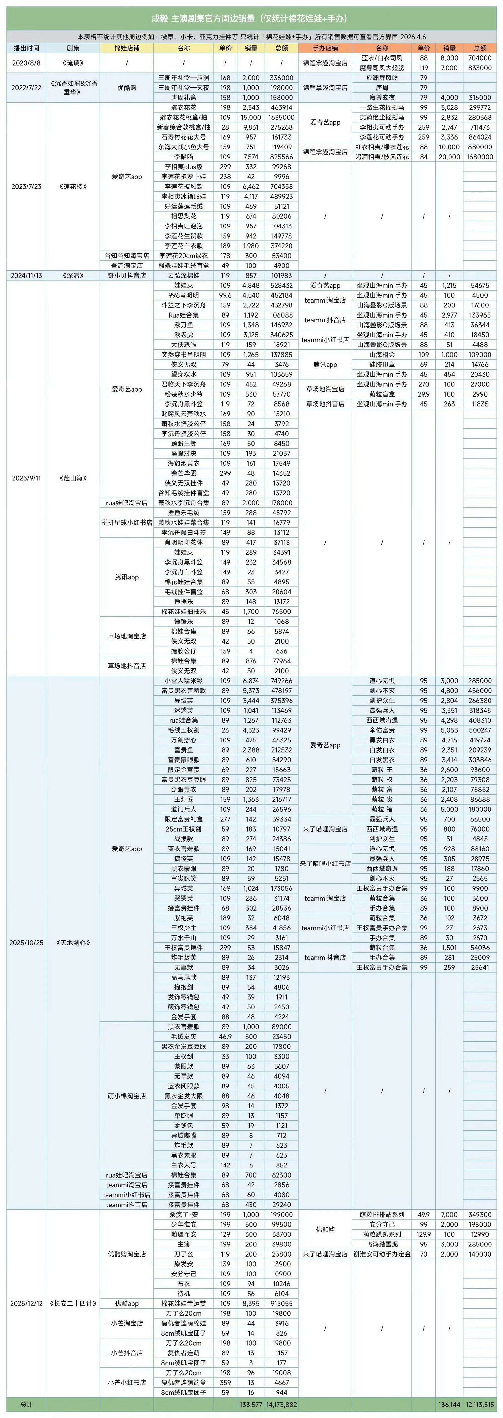 我哩个豆,一张图告诉你,成毅是真正的财神爷!成毅主演剧集关方周边销量(仅棉花娃娃➕手办),这恐怖如斯的剧IP周边衍生能力,个人即IP具象化!