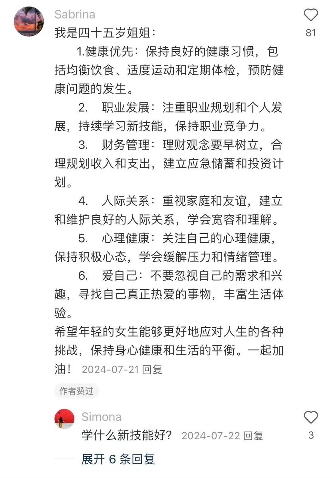 45岁成功女人对30岁女生的人生建议