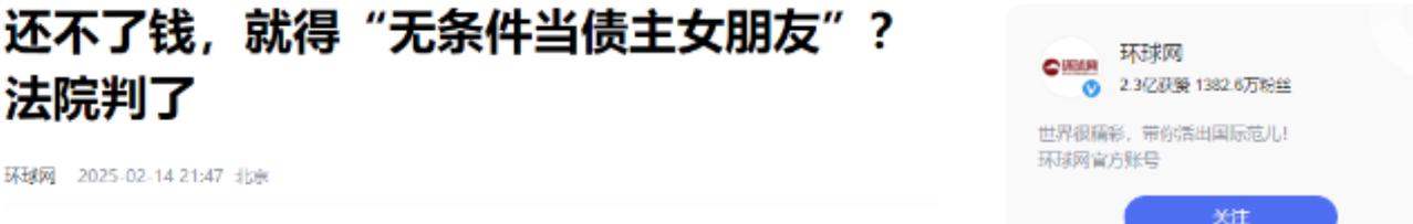 纯白嫖?2022年江西,一女子因缺钱,向朋友借了15万元,还与朋友签了还不上就当朋友3年女友的合同,两人约定,期间分期返还钱款,没想到,2个月后女子拒绝还钱,被朋友告上了法庭。   2022年,江西萍乡莲花县发生了一件让人哭笑不得的民间借贷纠纷,当时的女子张某(化名小梅)因为家里急用钱,四处筹钱无果,最后找到了条件不错的朋友贺某(化名大贺)开口借15万。   而贺某当时对张某有好感,一直有追求的意思,但张某没答应,这次张某实在走投无路,只能拉下脸来求助。   贺某得知后也是愿意借钱,但也留了个心眼,担心张某还不上。   就这样两人商量时,张某为了能顺利拿到钱,主动提出如果还不上,就给贺某当3年女朋友抵债。   贺某同意了,当天两人就签了一份《个人借款协议》,白纸黑字写得很清楚:张某借15万,分期3年偿还;要是逾期没还,张某就得无条件当贺某女朋友3年;要是哪个月没按时还款,当月就得履行女友义务,要是拒绝,还要赔偿贺某5万,并且一周内还清所有剩余欠款。   协议签完,贺某直接给张某转了15万,一开始张某还算守信用,按约定还了2个月的钱,前后一共还了54158元。   可没过多久,张某就变了卦,既不想再还钱,也不愿意履行所谓的"女友义务",直接断了还款。   贺某见此多次催要都没结果,觉得张某言而无信,当初的约定全不算数,一气之下在2024年9月把张某告上了莲花县人民法院,要求她偿还剩下的本金和利息,还要承担诉讼费。   法庭上,双方各执一词,贺某的律师拿出了微信聊天记录、银行转账回单,证明15万借款和张某还款的事实。   张某却辩称,自己没还钱的月份,就已经算是贺某的女朋友了,钱就不该再还,还拿出借款协议和聊天记录,想证明两人是男女朋友关系。   法院审理后看得很明白,首先张某和贺某之间就是普通的民间借贷关系,这部分是合法有效的,张某还了一部分钱后就违约不还,本身就不对。   其次,协议里"还不上钱就当3年女友"的条款,明摆着侵犯人身自由,把人身关系当成商品交易,完全违背了公序良俗,而且张某的证据也证明不了两人真的成了男女朋友,所以这部分条款根本无效。   最终法院判决,张某要归还贺某剩余的借款本金95842元,但没有支持贺某索要利息的诉求。   这件事在网上传开后,网友们看法也分成了两派,有网友站贺某这边:"借钱的时候说得好好的,还了两个月就反悔,这不是骗人吗?不管条款合不合法,起码的诚信得有吧。"   也有网友觉得张某更委屈:"这协议本来就离谱,用女朋友身份抵欠款,根本就是不公平的约定,法律不承认才是对的。"   其实说到底,这件事就是两个人法律意识太淡薄闹出来的,贺某以为签了合同就能用金钱绑定感情,把恋爱和债务混为一谈,没想到这种涉及人身自由的约定,法律根本不认可。   张某为了借钱随口答应荒唐条件,事后又反悔违约,既没省下钱,还闹上法庭丢了脸面。   民间借贷可以有协议,但所有约定都得在法律框架内,不能触碰人身权利、违背公序良俗。   更何况感情是不能用合同来约束的,金钱往来也得守规矩,不然最后只会落得朋友反目、得不偿失的下场。   对此您有什么不同的看法,可以在评论区留言讨论!!!
