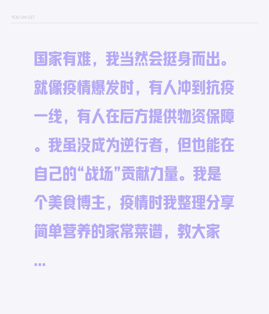 国家有难,我当然会挺身而出。就像疫情爆发时,有人冲到抗疫一线,有人在后方提供物资保障。我虽没成为逆行者,但也能在自己的“战场”贡献力量。 我是个美食博主,疫情时我整理分享简单营养的家常菜谱,教大家用姜蒜蜂蜜做饮品,介绍富含维C的水果做法。粉丝说吃上热乎健康的饭菜,心里踏实了。这让我明白,挺身而出不一定要冲锋陷阵。每个人在自己岗位尽职尽责,汇聚的力量就很强大。国家有难,我们都能用不同方式担当,这就是最美的奉献。
