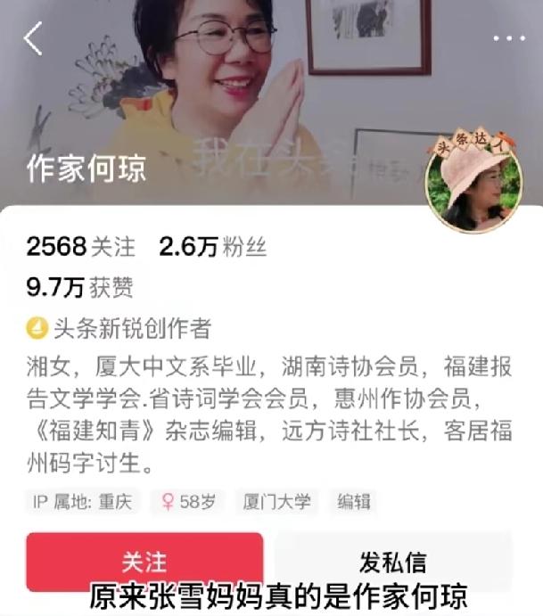 张雪的妈妈接受他们老家的记者采访,他妈妈真的是厦门大学毕业的女作家,大家不要再质疑了。是张雪太低调,没有镜头面前提到过。 张雪的妈妈带着一脸的骄傲地说:我儿子在社会上几十年了,但内心仍然很干净。他对机车的专注和热爱是他的生命核心,他只想造一辆好车。他现在还在用着一两千的手机,屏幕都是坏的,他还不会开车,他从来不追求物质上的享受。张雪的妈妈还有跟儿子,儿媳,孙子一起在张雪赛事上的合影 ,以及在张雪重庆家中的母子合影。张雪的舅舅也接受了采访,他说张雪出生的时候,我就在旁边,当时我也才十几岁。外甥小时候很调皮,只有天够不着。张雪那么厉害,他的妈妈也很厉害,在那个年代能成为作家真的是才女。