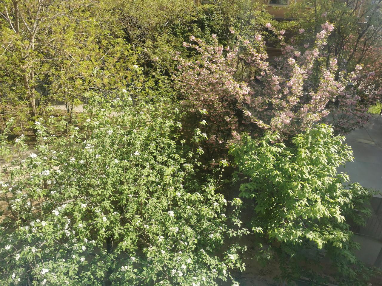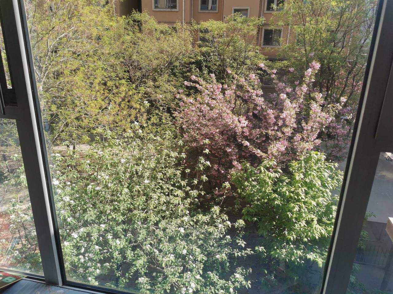 窗外的风景!一树苹果一树樱,鲜花盛开春机生!赏花何须去深山,推开窗户是风景。