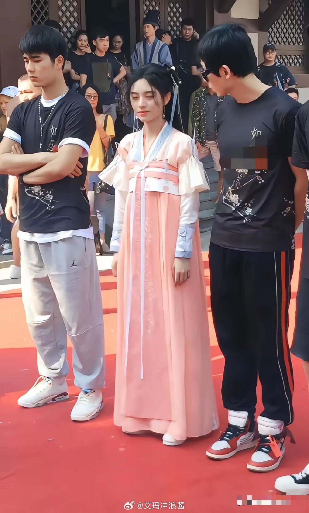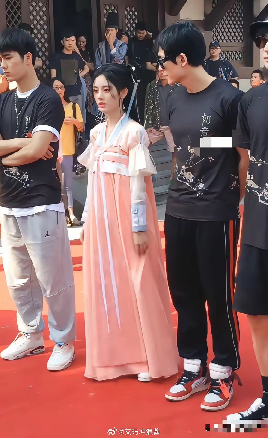 第一次发现鞠婧祎有点男相,跟旁边男的头一样大!