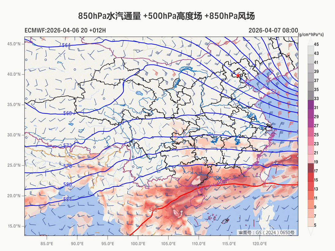 预计4月8日08时至9日08时,黄淮大部、江淮、江汉南部、江南北部、重庆北部等地部分地区有中到大雨,其中,湖北东部、河南南部、安徽西部等地部分地区有暴雨或大暴雨(100~120毫米)。8日晚-9日晨,低空西南急流风速可能超30米/秒,水汽和对流能量激增,湖南湖北安徽等地要格外警惕强对流。