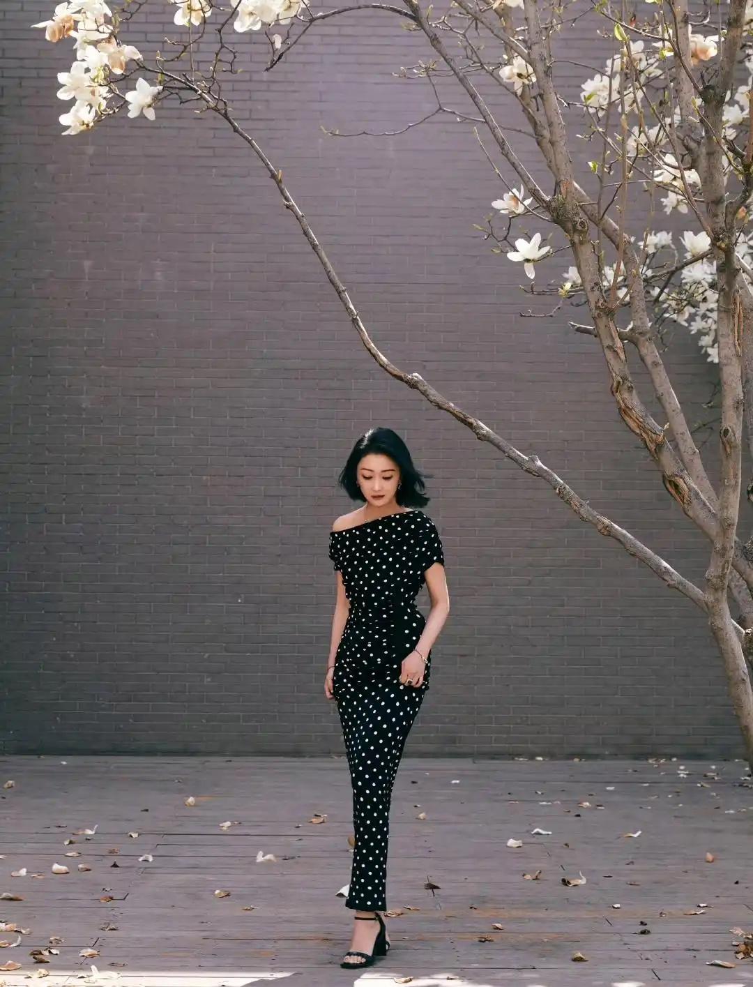 不得不说,张瑶穿上这样的波点包臀长裙在花树下演绎女人美,让人看得挪不开眼!花美人美裙美,哪哪都美,看着看着就醉了!这样的短发配上这样的长裙,利落干练之余尽显性感女人味,展现与众不同时尚美。