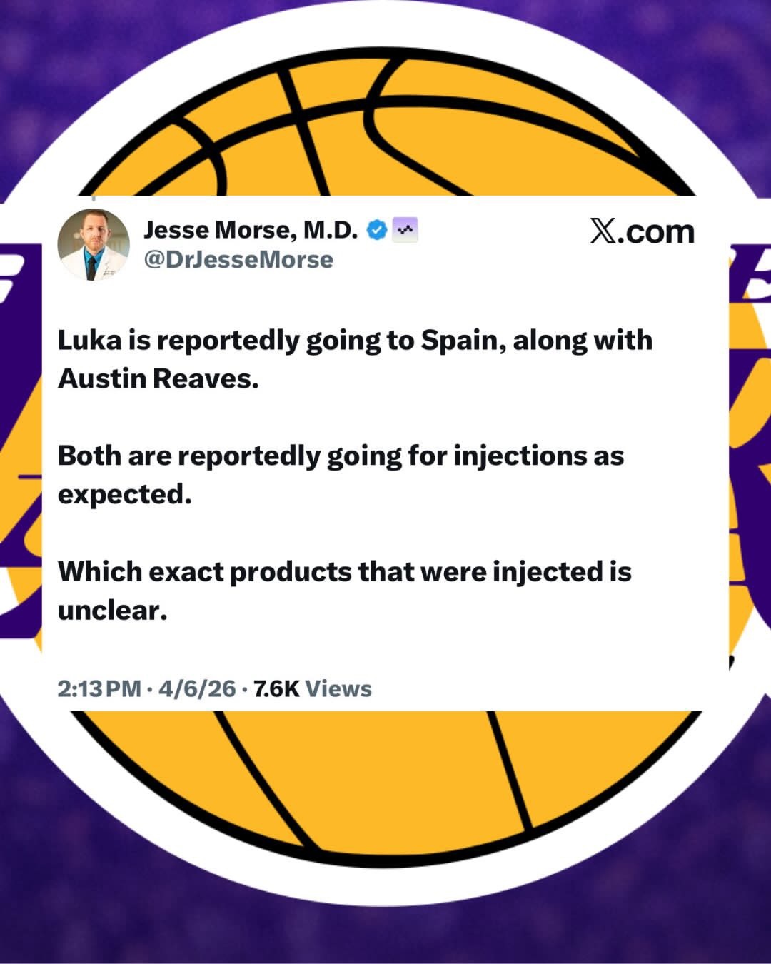里夫斯也将和东契奇一起将前往欧洲接受左腿筋的“专门医疗治疗”,湖人希望他们两位能快点回归!东契奇将去欧洲接受治疗里夫斯将去欧洲接受治疗