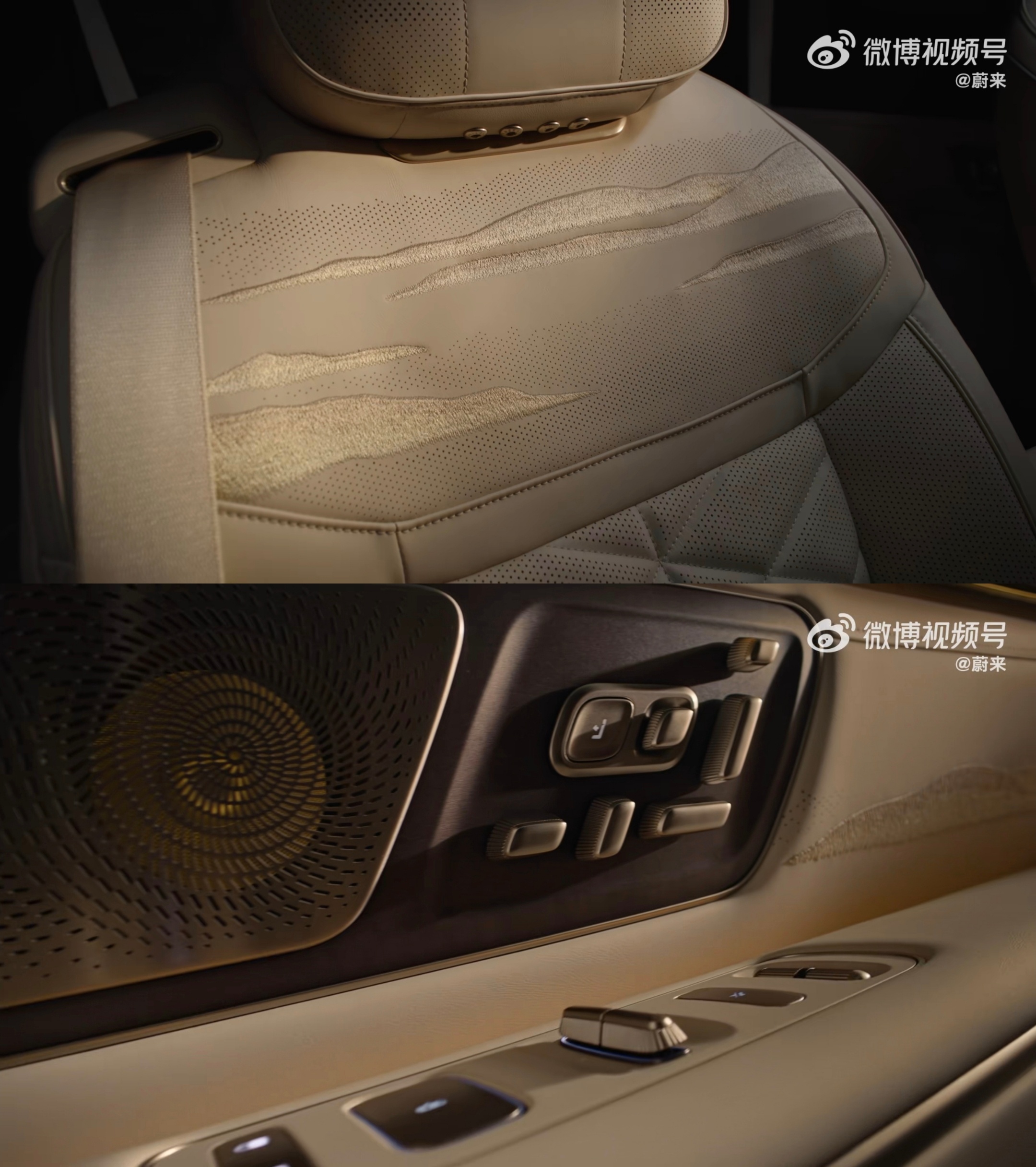 车门上的物理按键比ES8和极氪9X更多更密集,甚至椅背和门板上还有刺绣