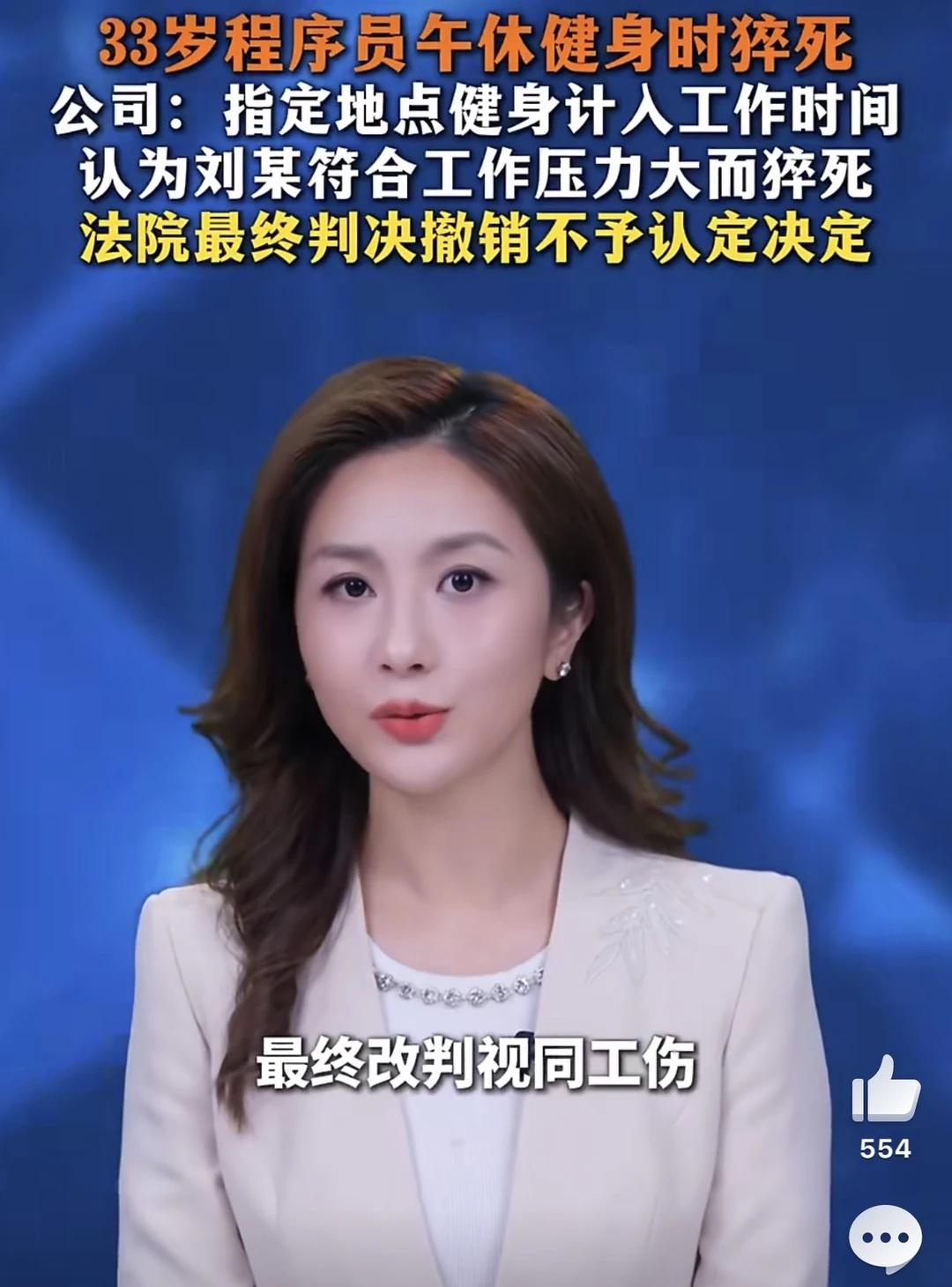 公司指定健身房内猝死员工被判工伤 据海报新闻4月5日报道: 北京某科技公司程序员刘某,在公司合作指定的健身房健身后晕倒经抢救无效死亡。 该公司员工手册明确规定,指定场所健身时间计入8小时工作时间,中午健身无须领导审批。公司据此申请工伤却被人社局驳回,随后提起诉讼。 法院审理认为,公司制度合法有效,健身是为了更好履职。刘某属于在工作时间、工作岗位突发疾病死亡,最终判决撤销不予认定决定,责令重新处理。互联网大厂 大厂 热点 程序员 猝死 认定 工伤