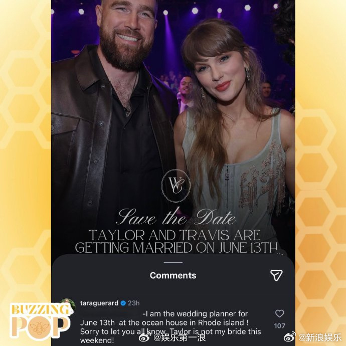 婚礼策划师否认霉霉预定场地 据外媒,一位婚礼策划师在ins发文,否认霉霉Taylor Swift预订了6月13日婚礼场地,她还表示自己收到无数求证私信。