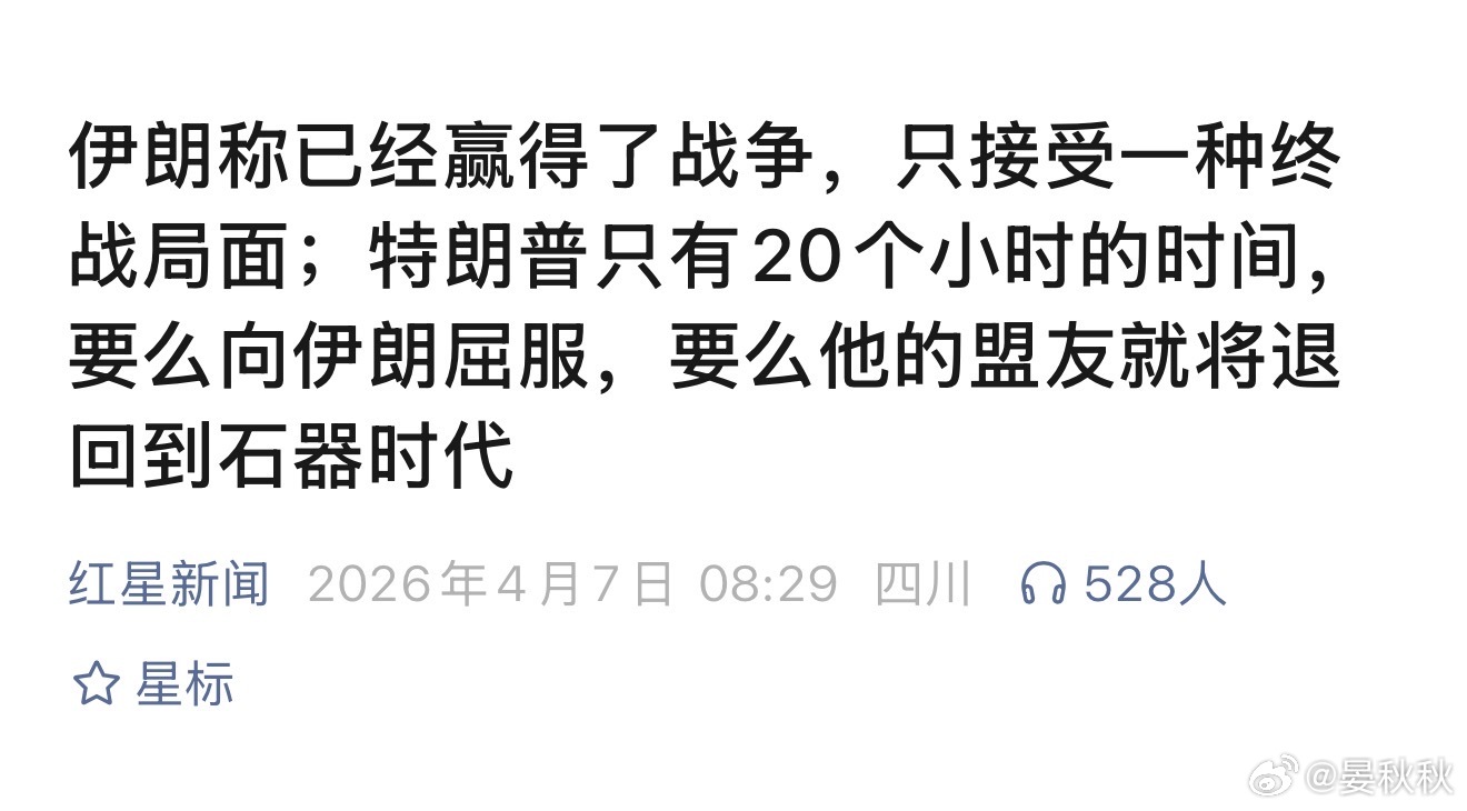 嗓门越来越大,放话越来越狠,局势越来越扑朔迷离……美国和伊朗这嘴仗,打得全世界心里都直打鼓。就在刚刚,伊朗一位议长顾问直接在社交媒体上放话,说伊朗“已经赢了”,还给美国总统特朗普划下了最后20小时。原话特别硬气,说特朗普要么低头服软,要么美国的盟友就得“退回石器时代”。这不就是特朗普这两天老挂在嘴边的、威胁要把伊朗“炸回石器时代”的说辞嘛。你来我往的,像小孩子赌气比谁更厉害。特朗普呢,有点“狼来了”的味道。冲突这一个多月,他好几次设定最后期限,从几天到几周,说法变来变去,但真到点儿了又常常没下文。这么搞几次,他说话的分量,在很多人心里可就打折扣了。伊朗这边呢,正好相反,是“一朝被蛇咬,十年怕井绳”,被折腾怕了,根本信不过美国。怕这次停火了,几个月后美国重整旗鼓再打过来。所以呢,态度特别强硬。一个觉得对方老喊空话,一个觉得对方毫无诚意。两边为了面子也好,为了吓住对方也好,狠话越说越绝,陷入了“你狠,我比你更狠”的恶性循环。两边要的东西根本拧不到一块儿:美国想让伊朗开放霍尔木兹海峡、限制军力;伊朗要美国先停火、给安全保障还得赔钱。这么搞,最吓人的地方在于,吵着吵着,保不齐哪边一个没忍住,或者哪个环节误会了,假戏就真做了,战争急剧升级。说实话,拖下去,情况会越来越糟。但要停下来,现在也没有好的契机。只能一边旁观,一边祈祷,希望事态不会发展到最严重的地步。