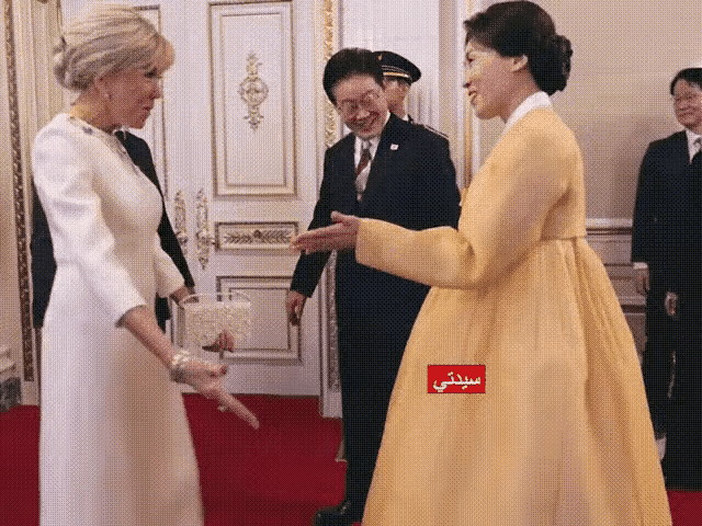 看得出,布吉丽特很喜欢民族服饰! 出访韩国的第一夫人,这态度来了个大转弯,在日本的不苟言笑的她,却在韩国有了笑脸。 看到人家传统的服饰,由衷的表示了喜爱,还热情的来了个拥抱。 果然传统服饰才是最吸引人的,难怪人家韩国第一夫人,不要潮流的时尚造型,极力宣传本土文化了!