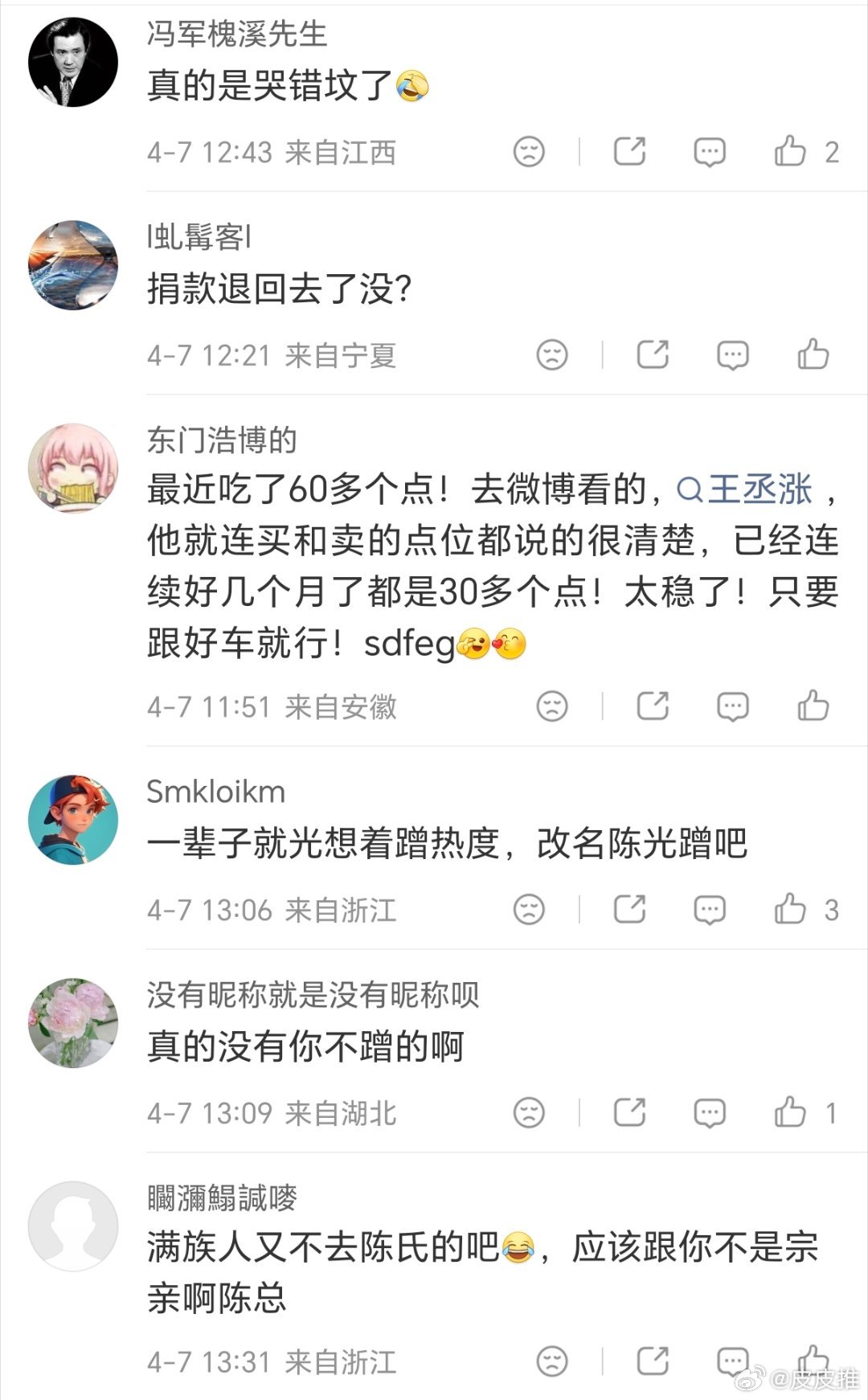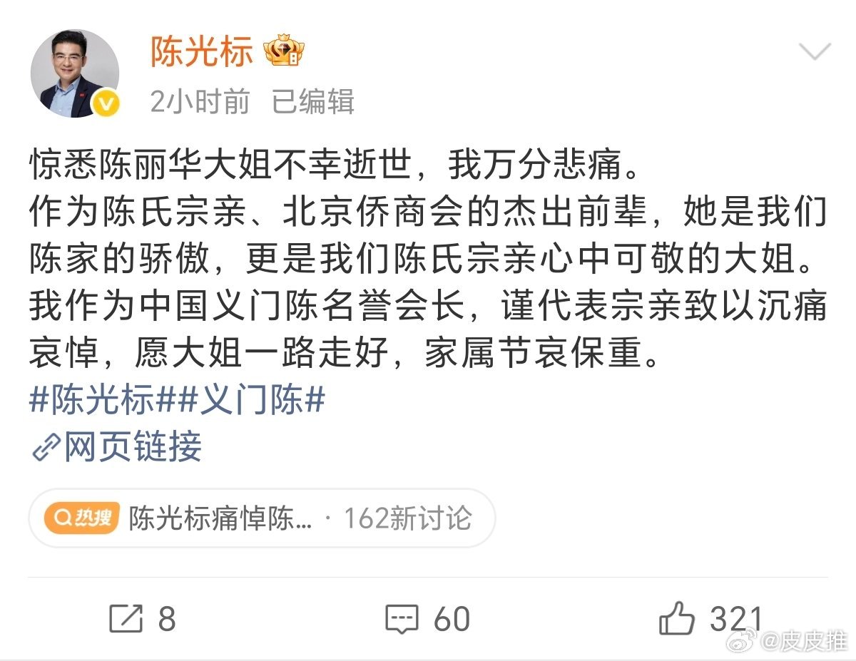陈光标痛悼陈丽华陈光标发文悼念陈丽华,不过,他的评论区全是骂他蹭,还有网友建议陈光标改名"陈光蹭",我觉得标哥再这样下去,账号要被封禁一阵子了陈丽华是唐僧扮演者迟重瑞的妻子科技先锋官