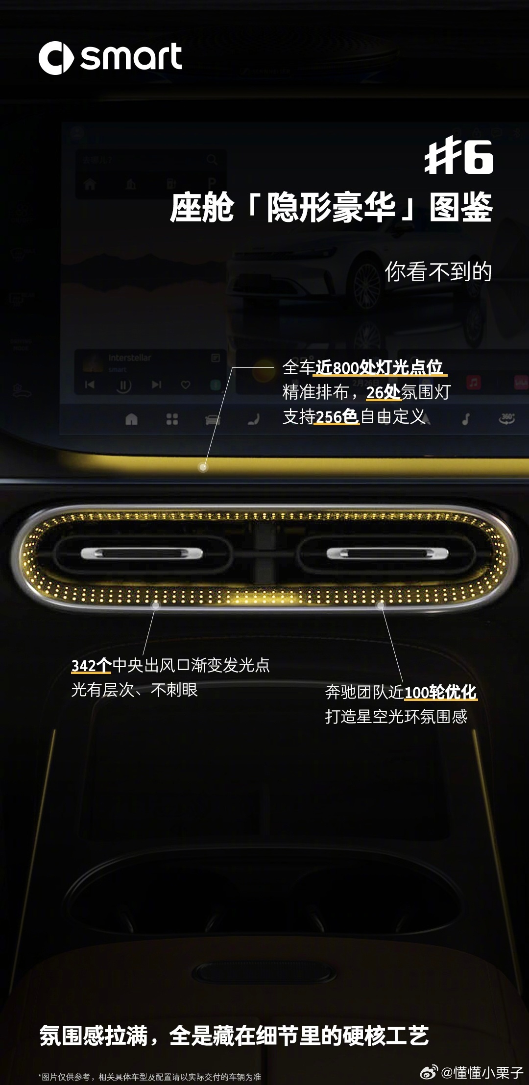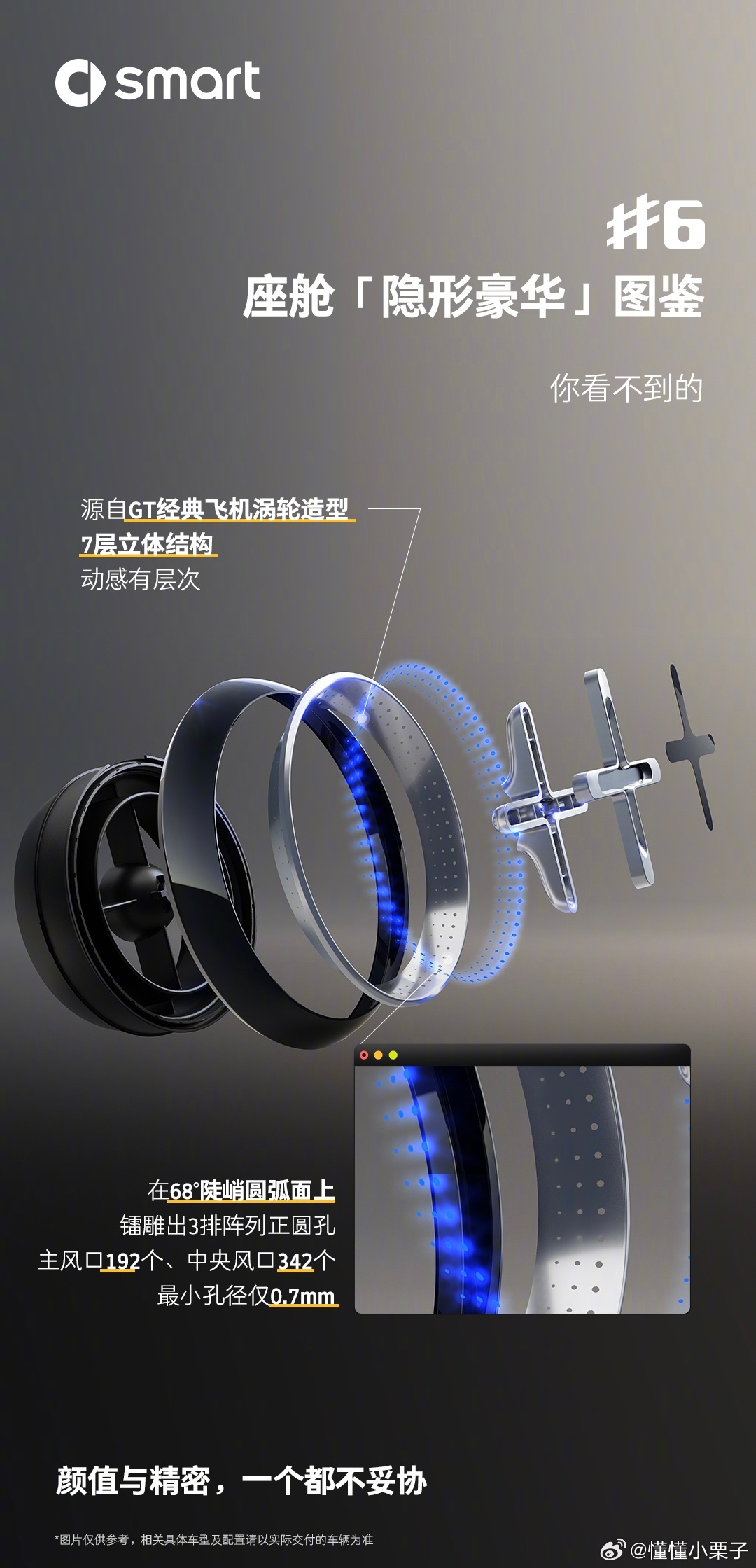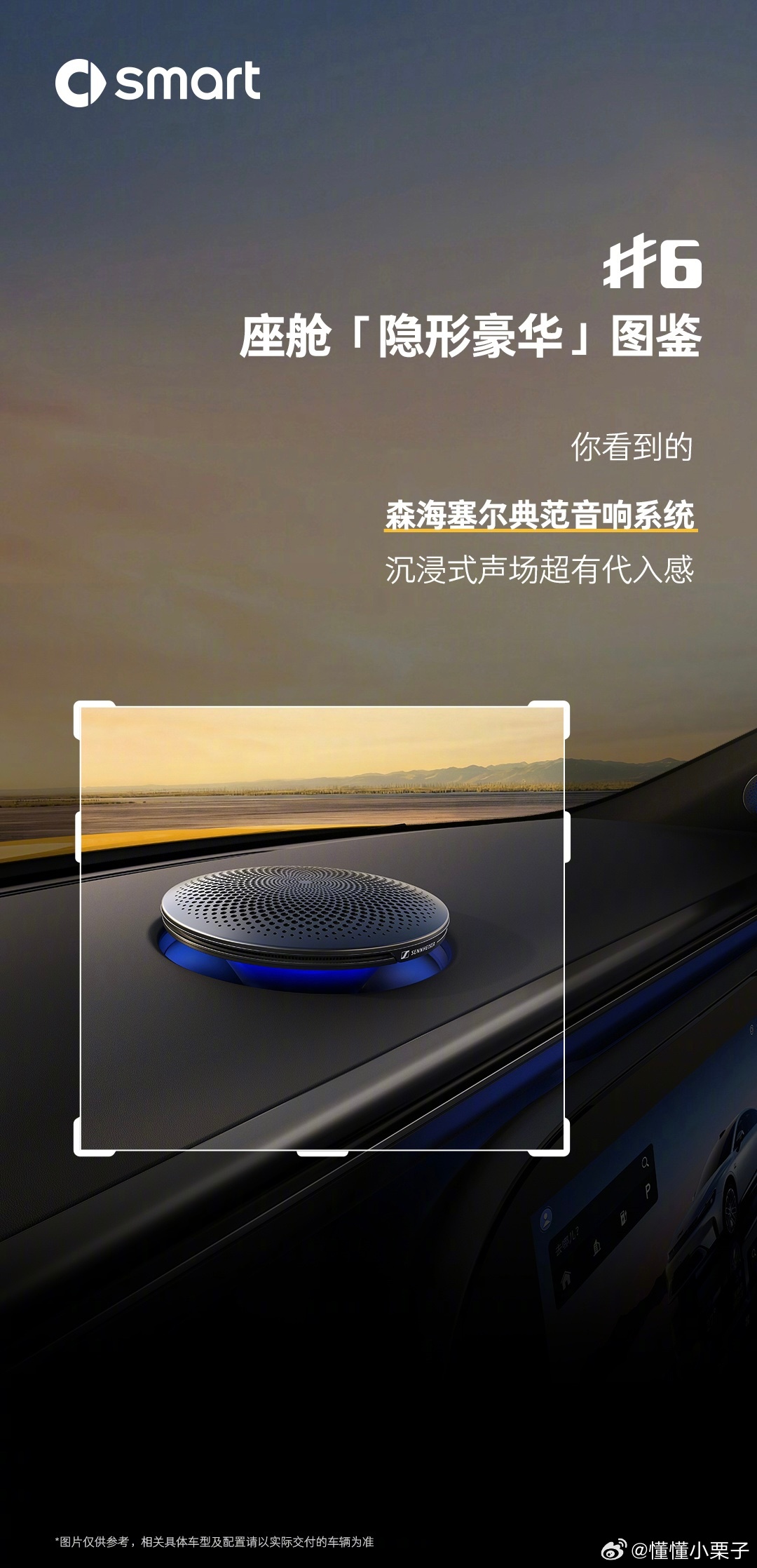 4月7日,smart 精灵6号内饰正式亮相,不走续航、价格路线,专注审美与仪式感。零压一体式运动座椅搭配金属膜片 + 精致打孔工艺,将古典雅致与现代质感完美融合;搭载森海塞尔真三分频音响,独立高中低频单元,带来沉浸式殿堂级声学体验;星光涡轮出风口融合GT经典设计与流动氛围灯,光影质感拉满。当汽车不止是代步,而是移动的生活空间,这份精致仪式感,你愿意为之买单吗?你愿意为车内的仪式感买单吗 大v聊车