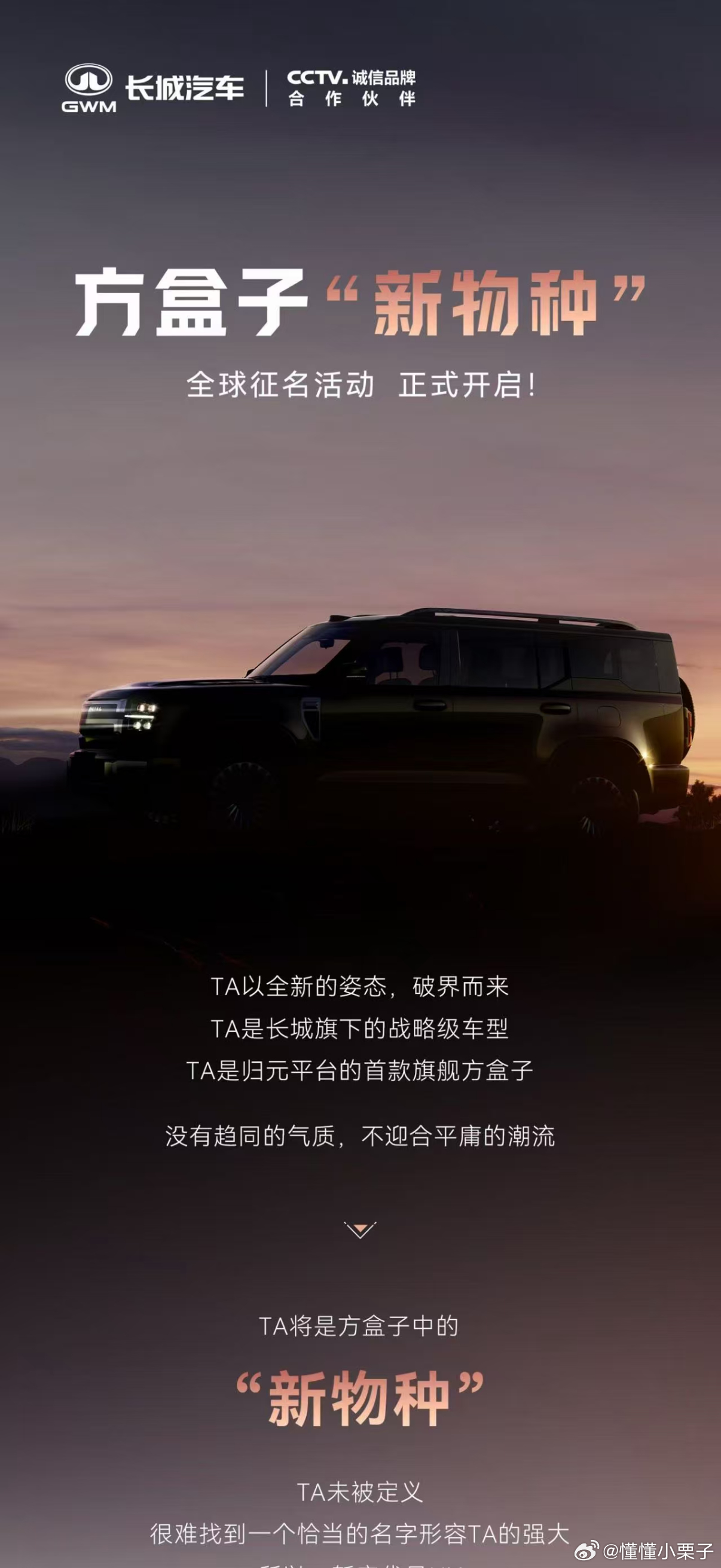 魏总在线摇人~归元平台的首款旗舰方盒子车型。据说是“新物种”,还未被定义,网友的想象力会有多强大呢?哈弗再推方盒子新物种哈弗大v聊车
