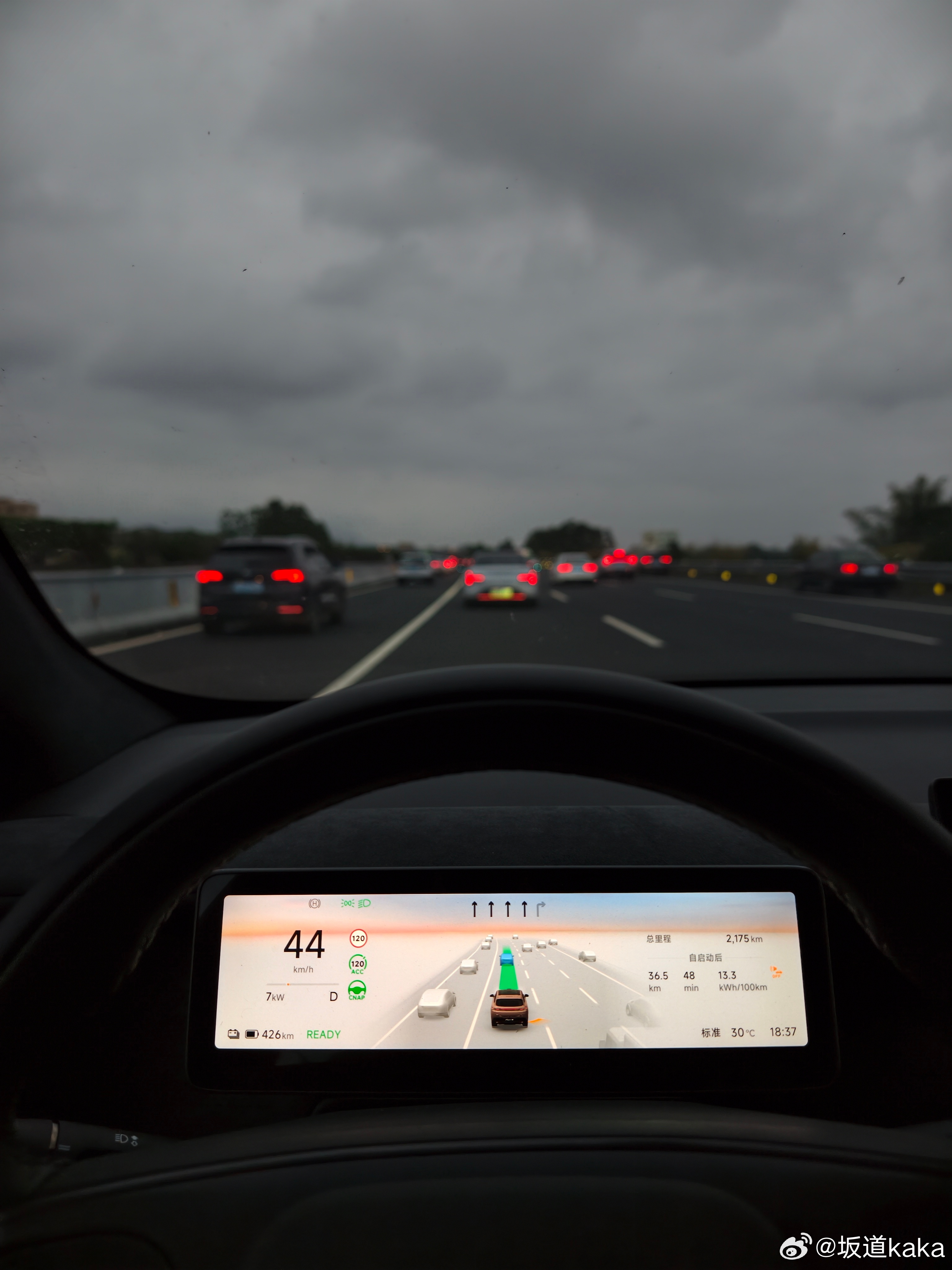 高速开启CNAP辅助驾驶,顶着100-120开,电耗在百公里15度左右。