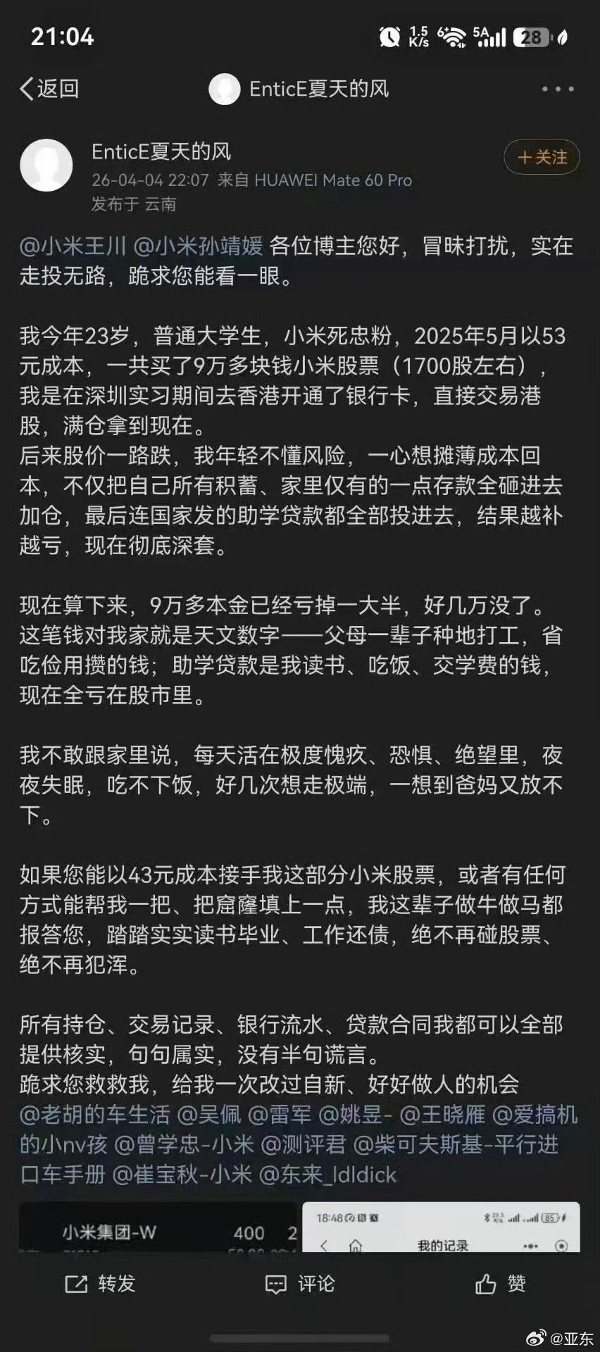 买小米股票亏了,找雷军要赔偿??编的吧,养一只边牧都干不出这么蠢的事。北京
