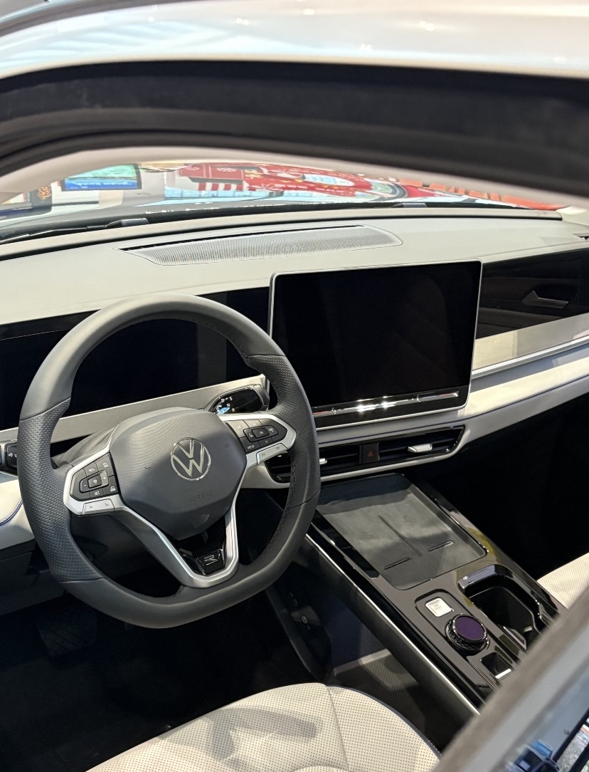 外观党看这里: IQ.Light智能矩阵大灯这次真下本了——自适应远近光+近光高速公路模式,晚上跑高速视野直接拉满,安全不费眼。R-Line保险杠更运动,格栅收敛、导流槽垂直车身,光泽与哑光材质混搭,配上银色底盘护板,高品质豪华感一眼入魂。