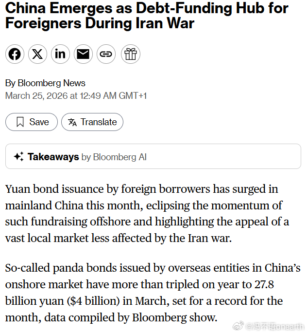 - 外国人民币债券发行量同比增长 3 倍- 美国十年期收益率:4.46%- 中国十年期收益率:1.82%