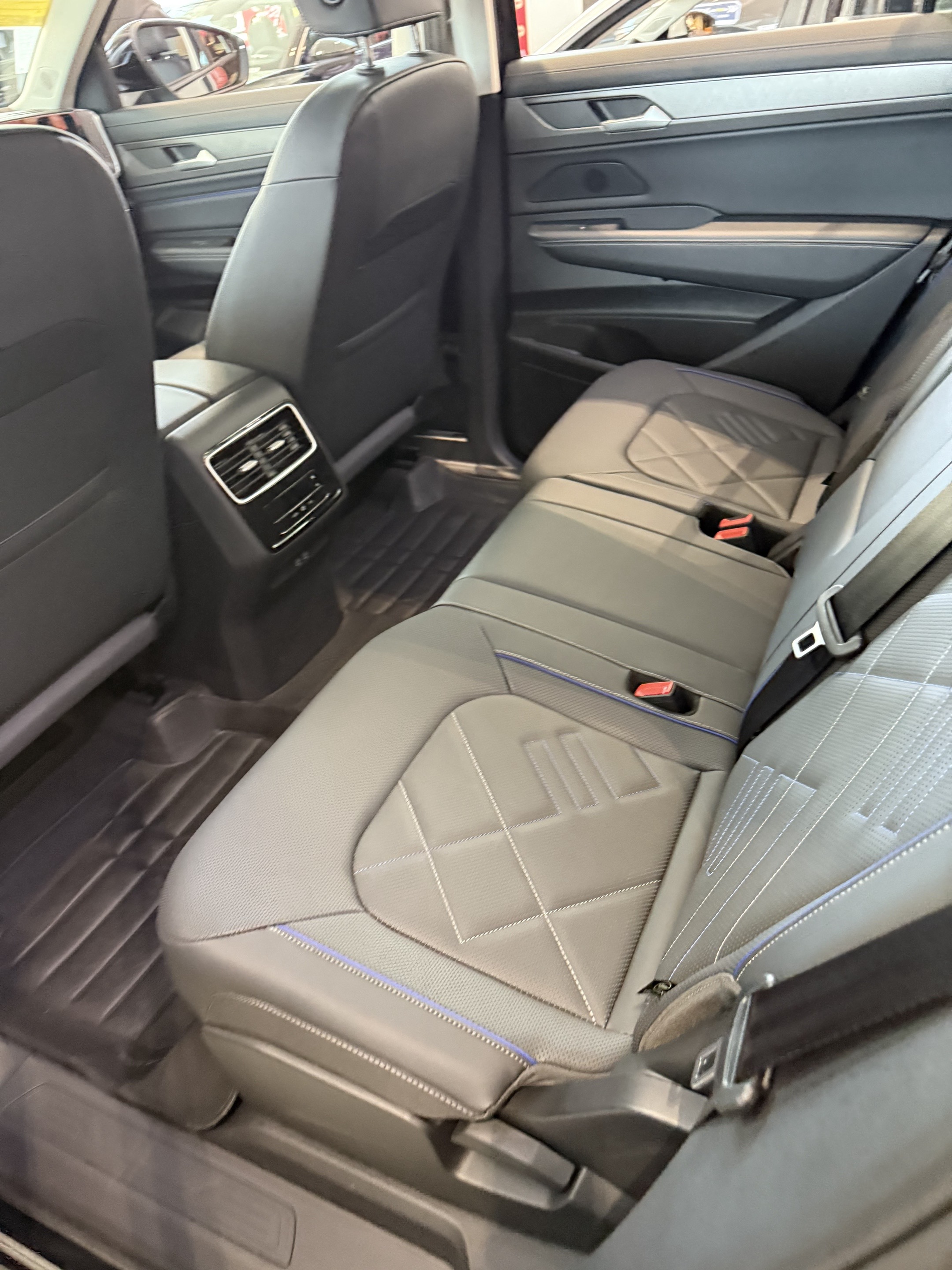 灯光与细节设计同样彰显匠心,IQ.Light智能矩阵大灯实力出众,搭载自适应远近光功能与近光高速公路模式,高速行驶时自动优化光照范围,清晰照亮前路,全方位保障行车视野与安全。R-Line版本保险杠设计更具运动质感,收敛式格栅搭配垂直导流槽,融合光泽与哑光两种高端材质,辅以银色底盘护板点缀,将运动感与豪华质感完美融合,尽显高品质造车工艺。