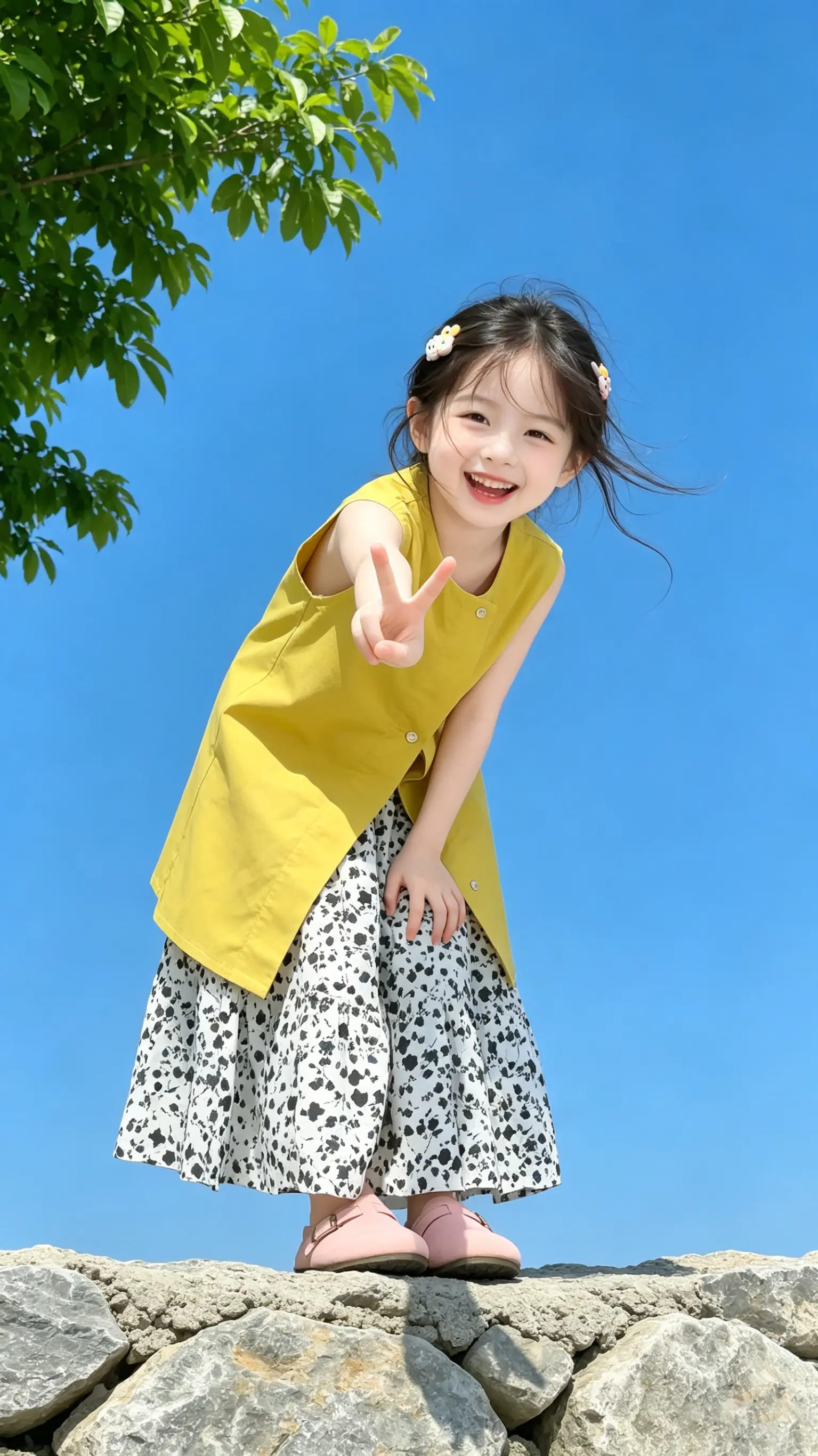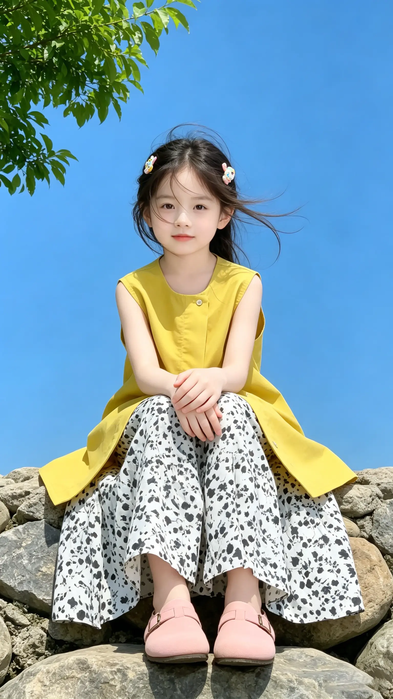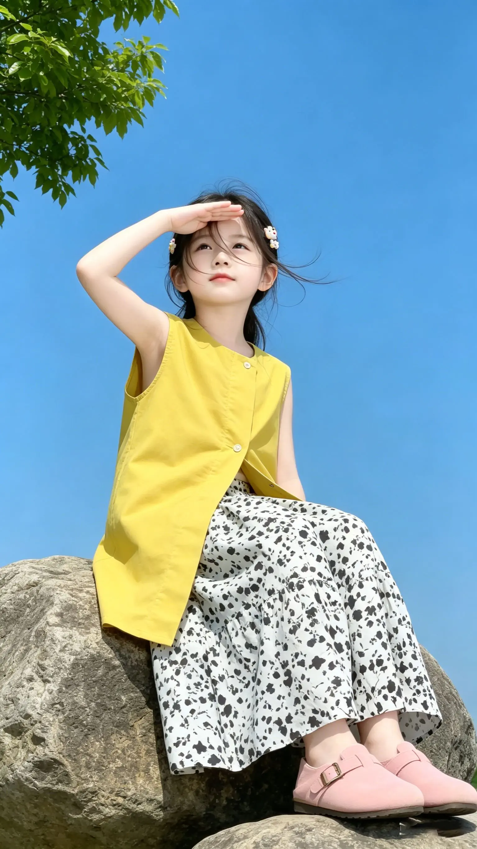 谁懂啊!这套女童夏装也太显白了吧。夏日元气甜妹穿搭来啦!姜黄色无袖衫清...