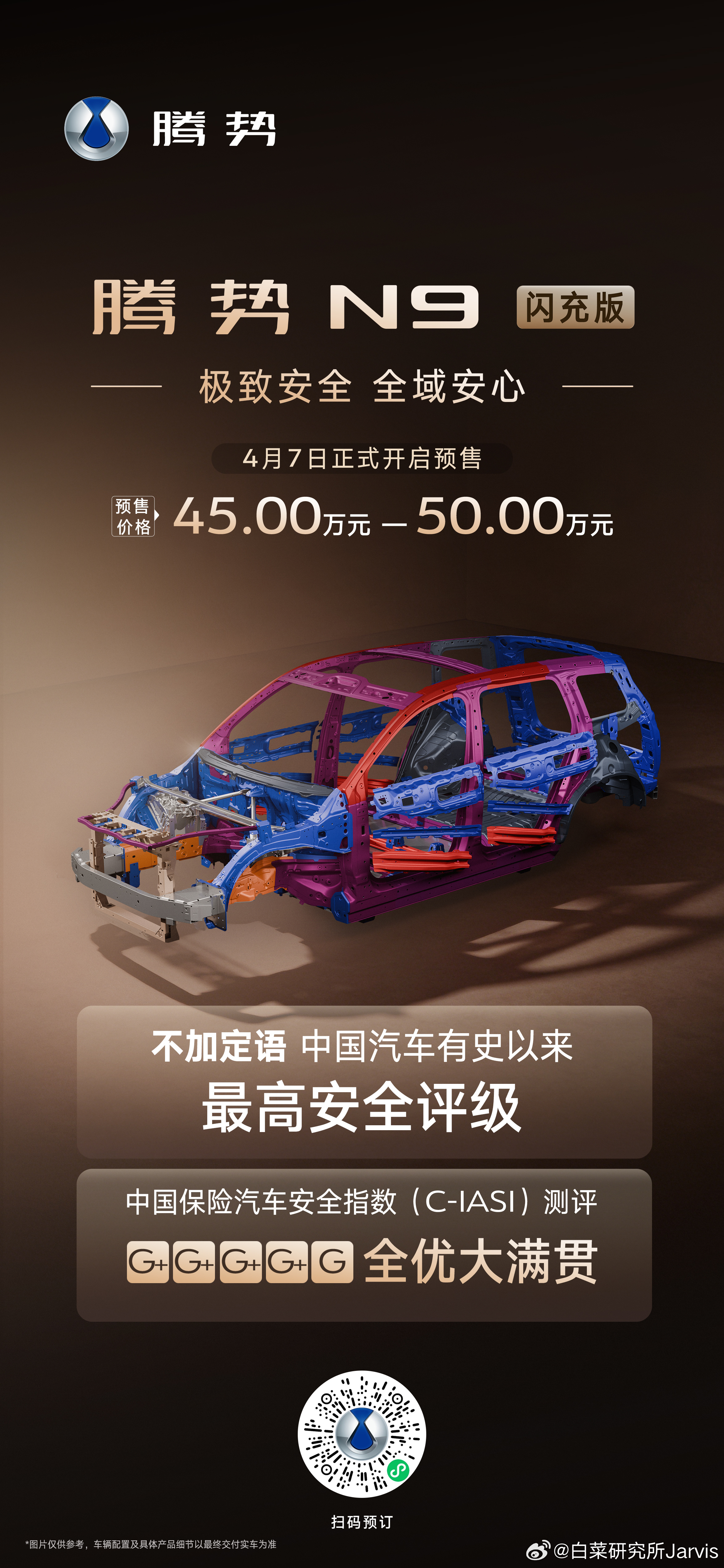 比安全更安全、比智能更智能、比科技更科技,比尊贵更尊贵,你们应该懂我意思。二代刀片闪充加持、易三方云辇A百万级底盘、天神之眼5.0+AI座舱、中保研有史以来最高安全评级、全优大满贯。都做到这步了,该支棱就支棱,50万没问题,卖便宜了,有些人吧他就真不看了,不如这样对齐,东西好坏一眼便知。大v聊车腾势N9