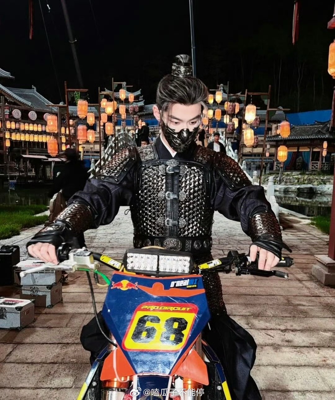 何与ins更新了,穿戏服骑车有点搞怪🤪