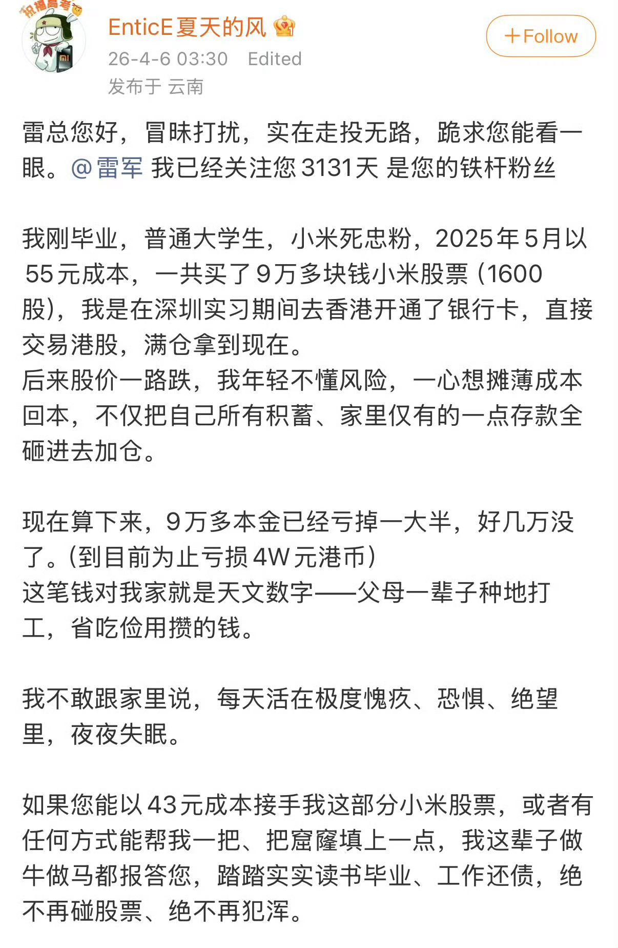 学生买小米股票亏钱,然后让雷军高价买回去……这不巨婴吗?